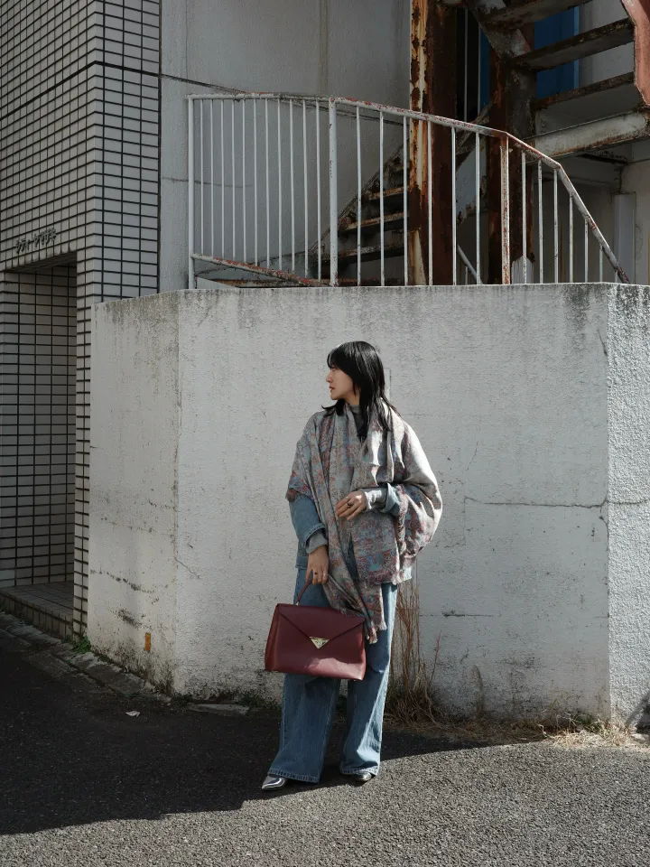 巻き方ひとつで、印象が変わるスカーフ。