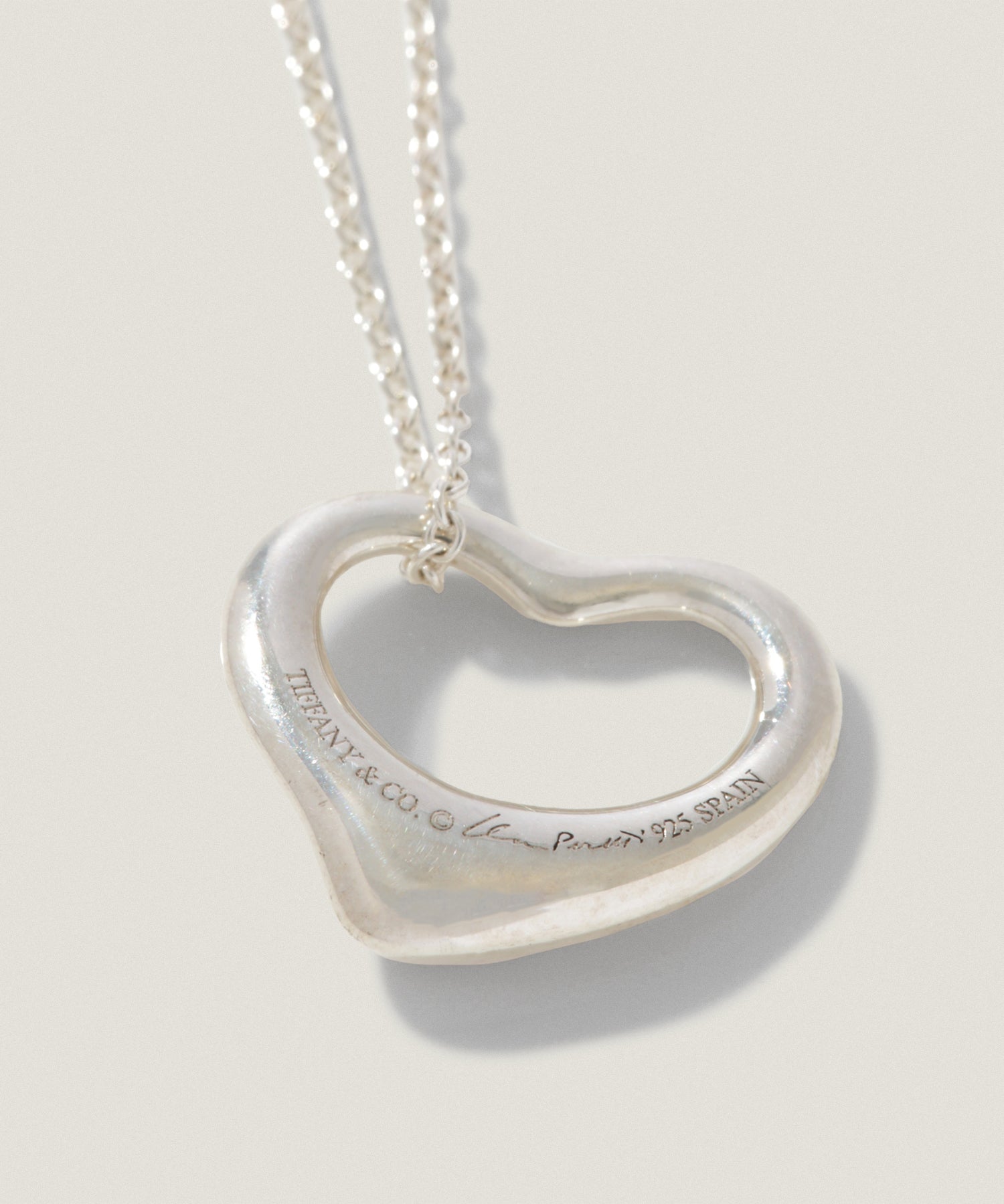 甘くなりがちなハートモチーフを、無駄のないラインと洗練されたバランスで仕上げたティファニーのシルバージュエリー。