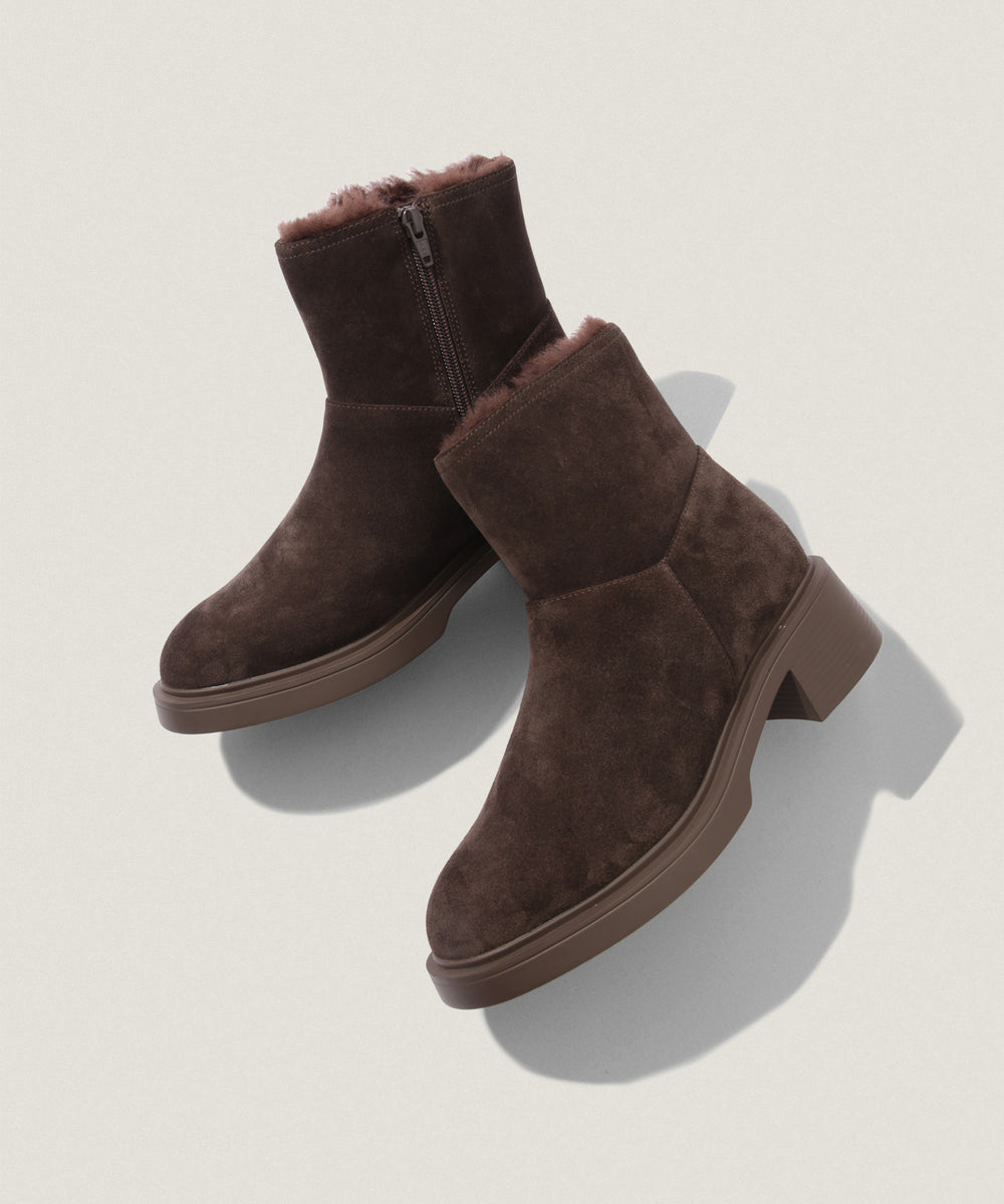 すっきりとしたシルエットなので、スカートにもパンツにも合わせやすく、冬のおしゃれを楽しめる一足です。
