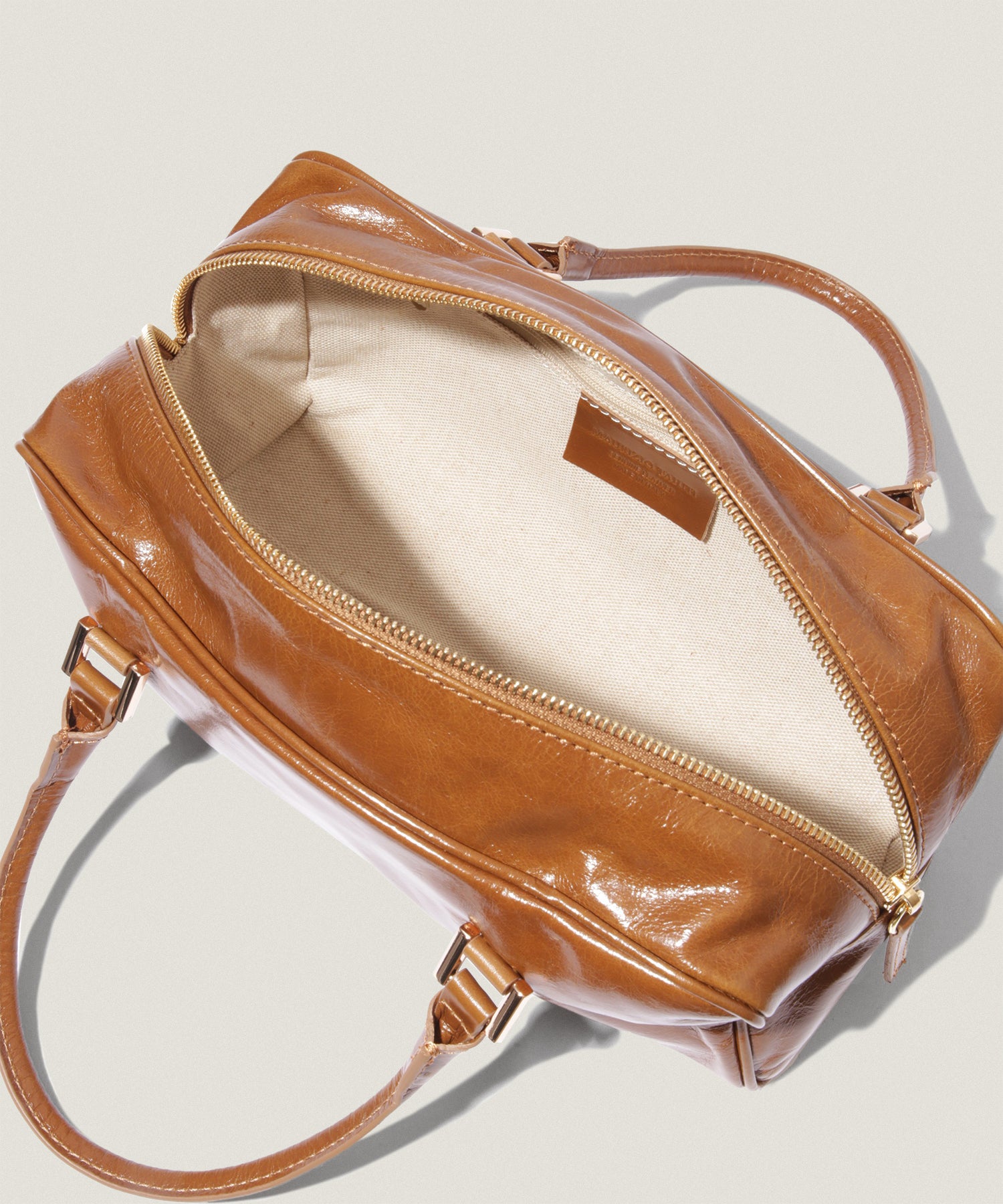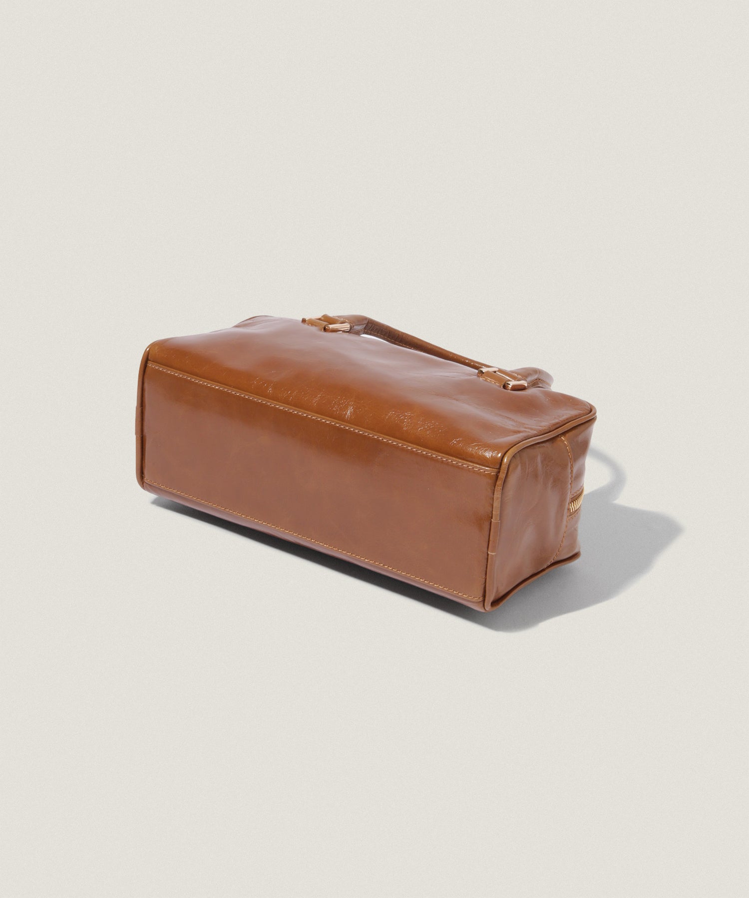 革のナチュラルな風合いを残しながら光沢加工を施しているため、多少の雨でもシミになりにくいのも魅力。