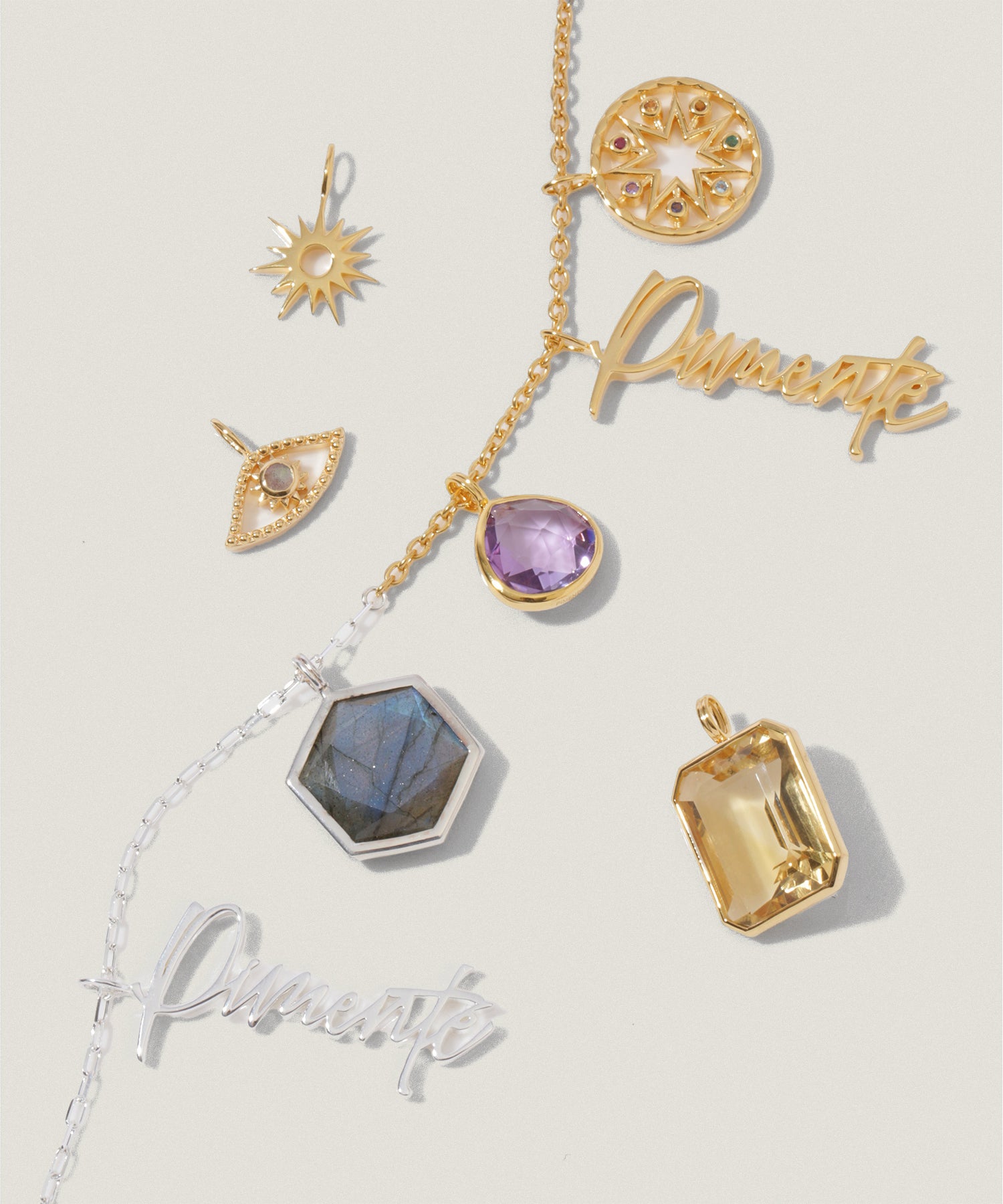 そう、今流行中のバッグのチャームのように、自由に重ねて欲しくて。