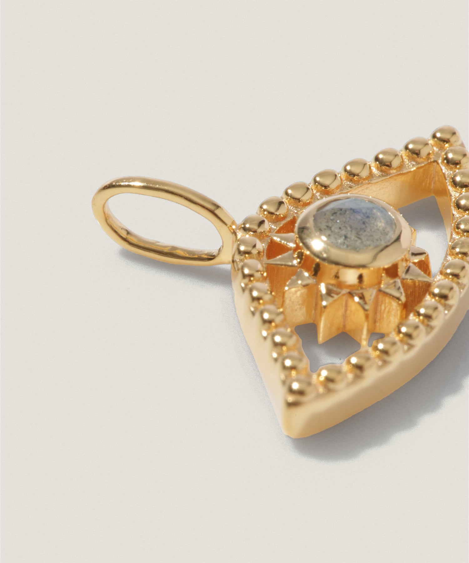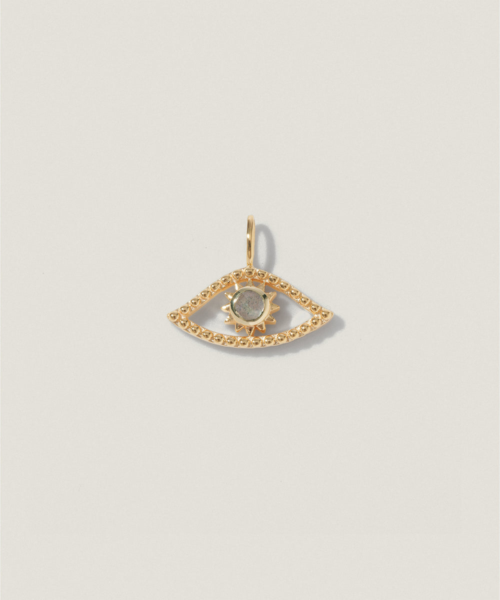 チーフに、神秘的な輝きを放つラブラドライトを組み合わせたチャームです。光