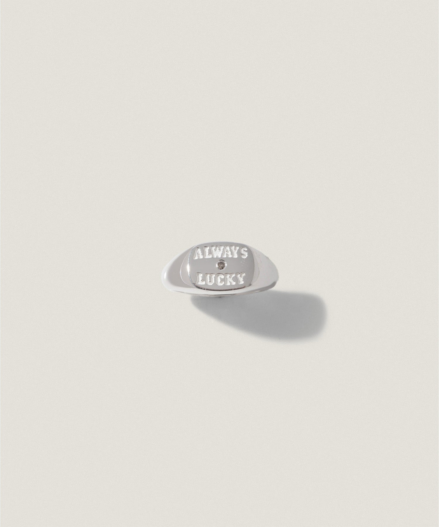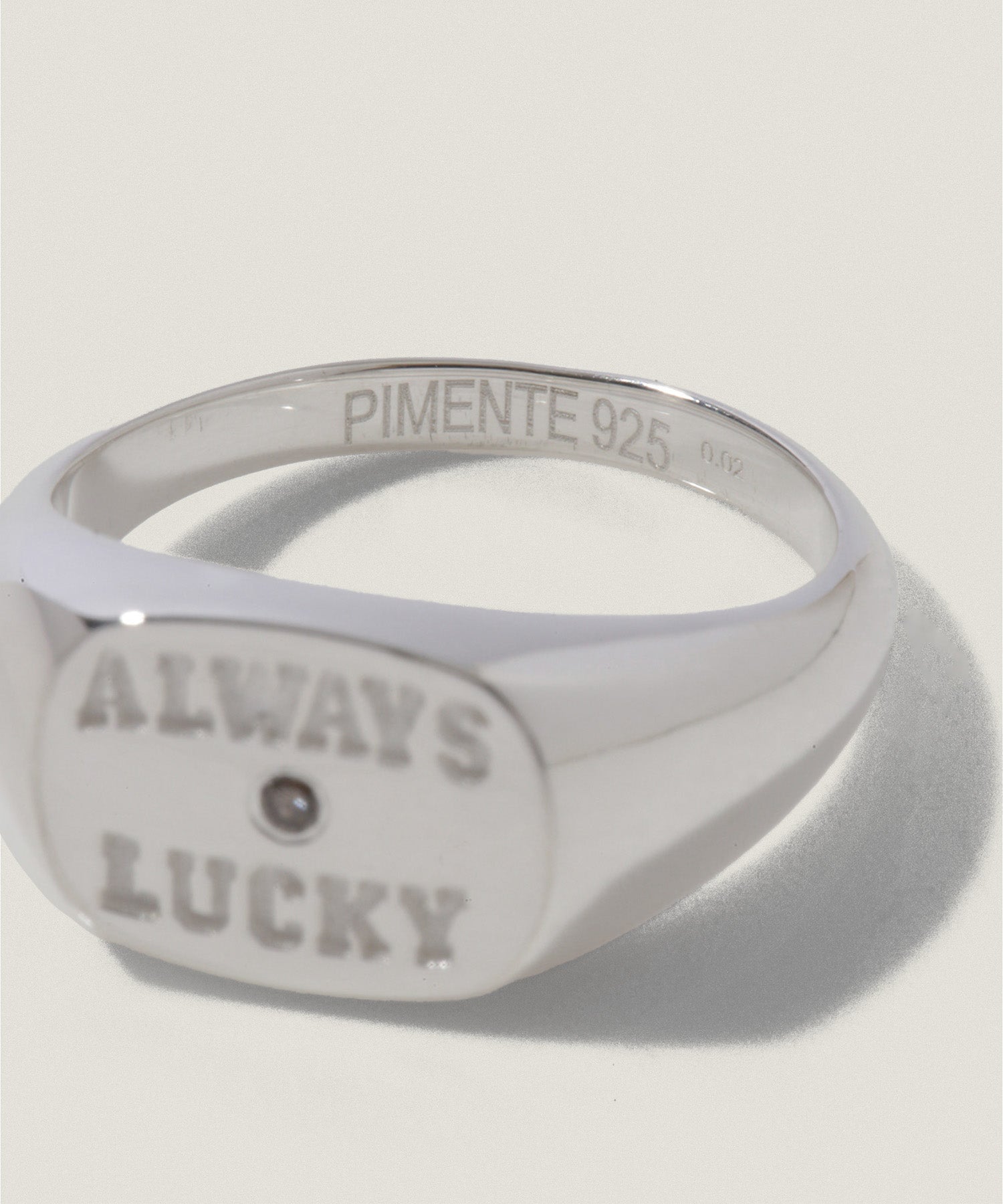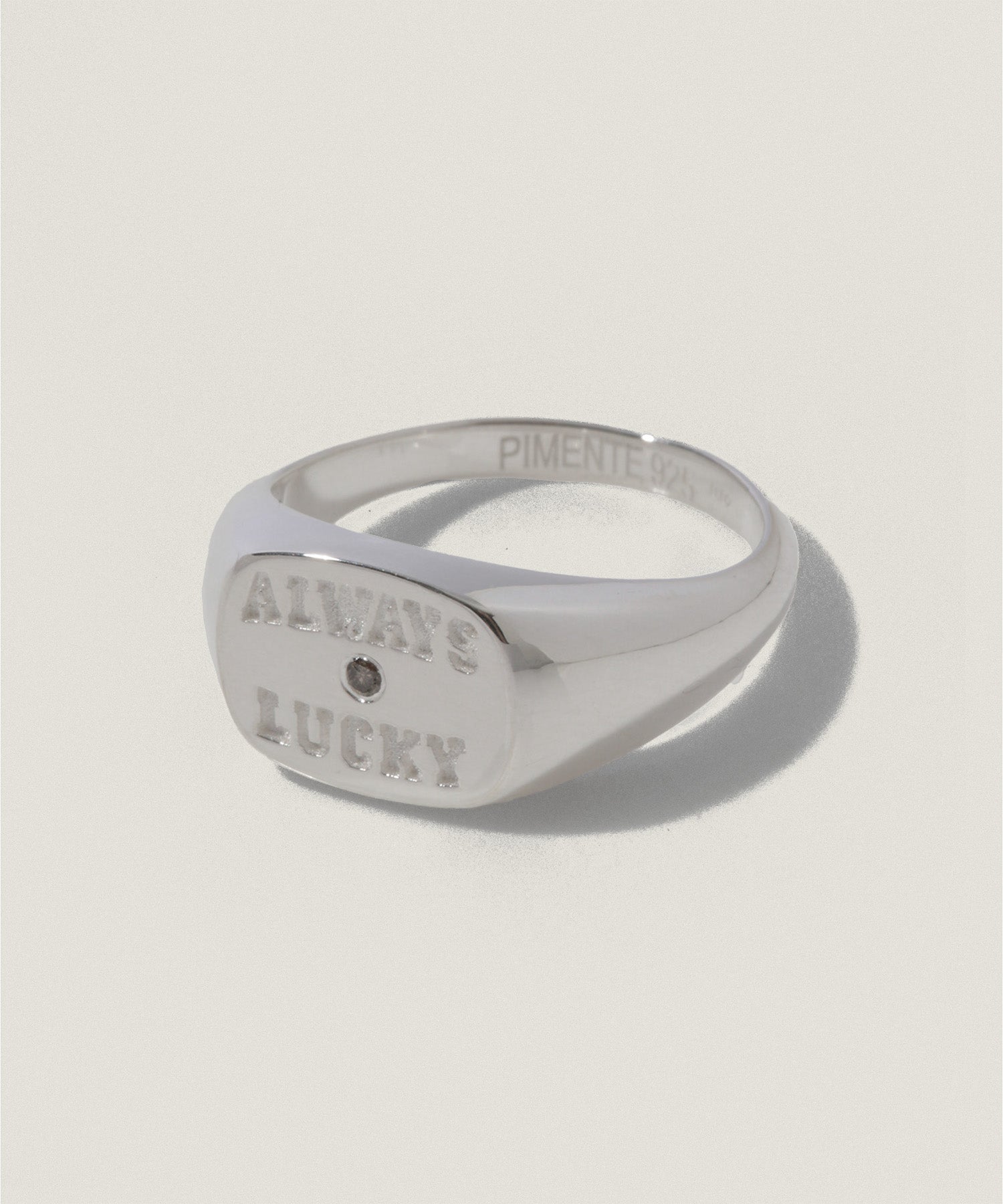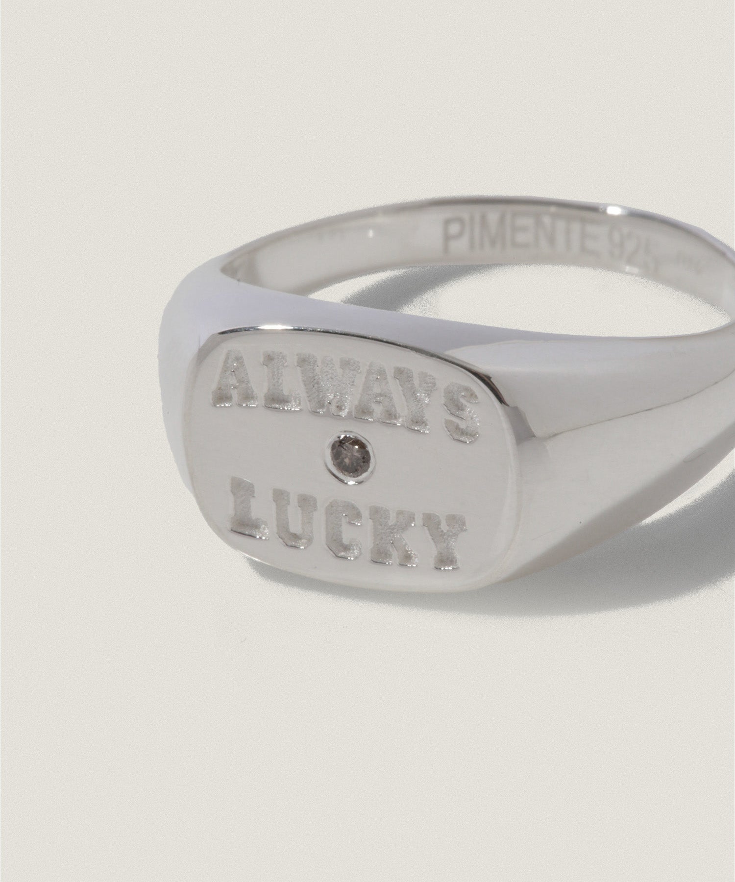 "ALWAYS LUCKY"の刻印とともに、さりげないきらめきを宿した、PIMENTÉならではのカレッジリングとなりました。