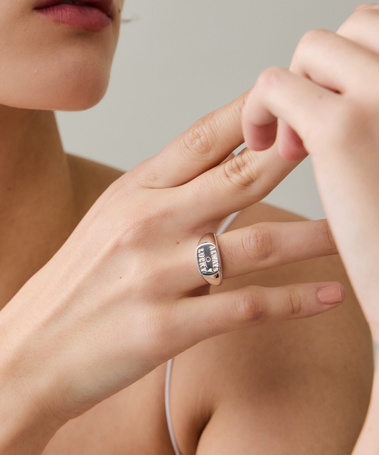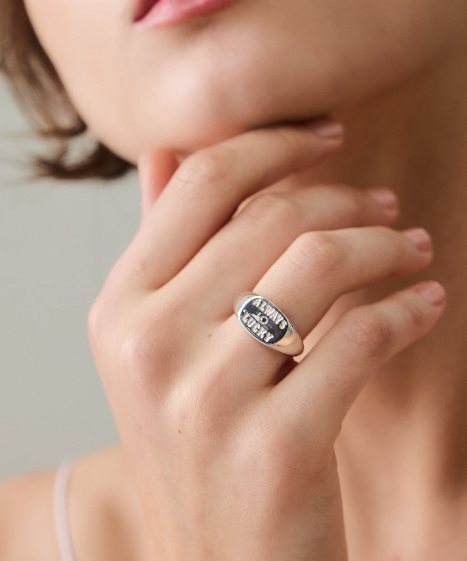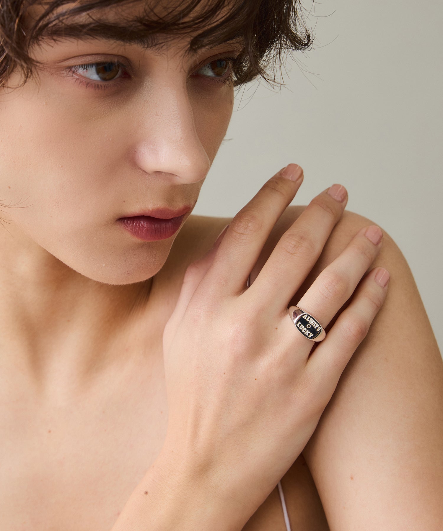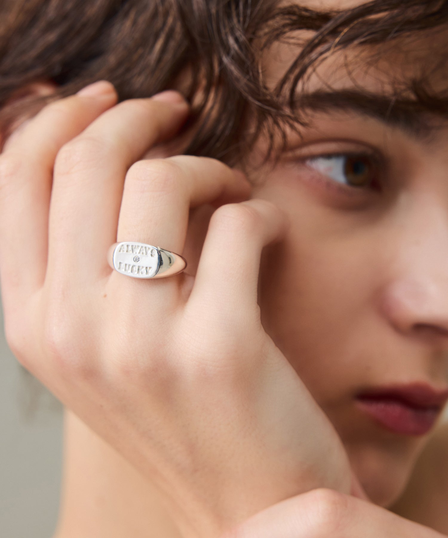 "ALWAYS LUCKY"の刻印とともに、さりげないきらめきを宿した、PIMENTÉならではのカレッジリングとなりました。
