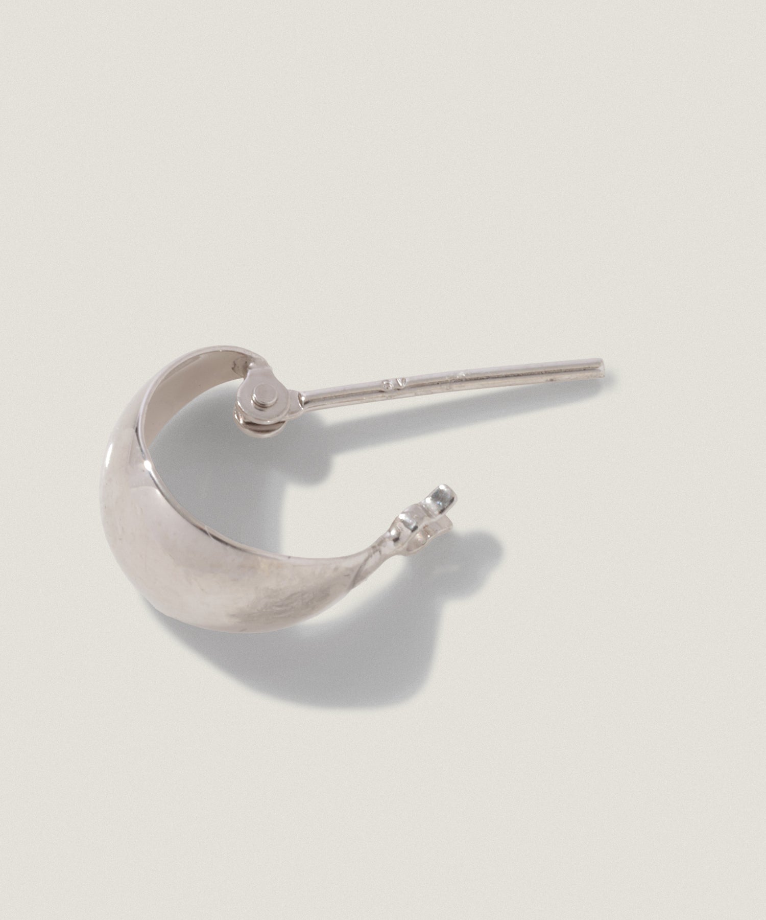 フープが耳の後ろまでつながるような見え方にこだわり、遮断機タイプのポストを採用。素材の特性上、ポスト部分はやさしく取り扱うことで快適な着用感を保てます。