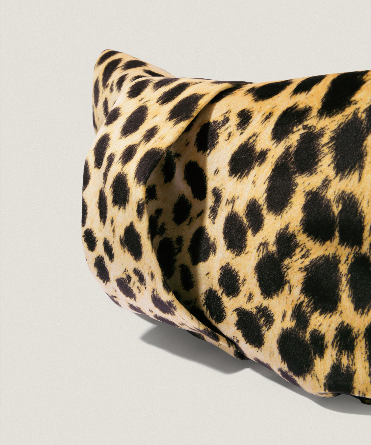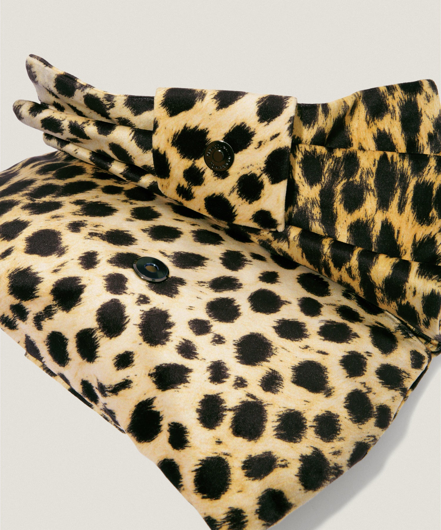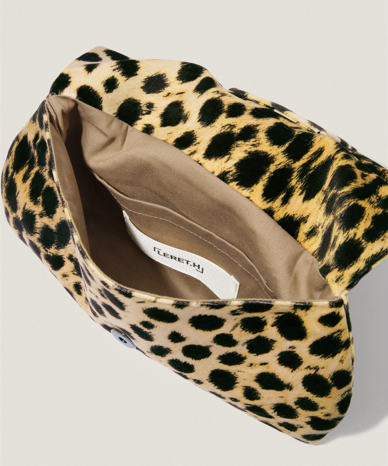 滑らかな起毛素材にレオパード柄をのせたクラッチバッグ。