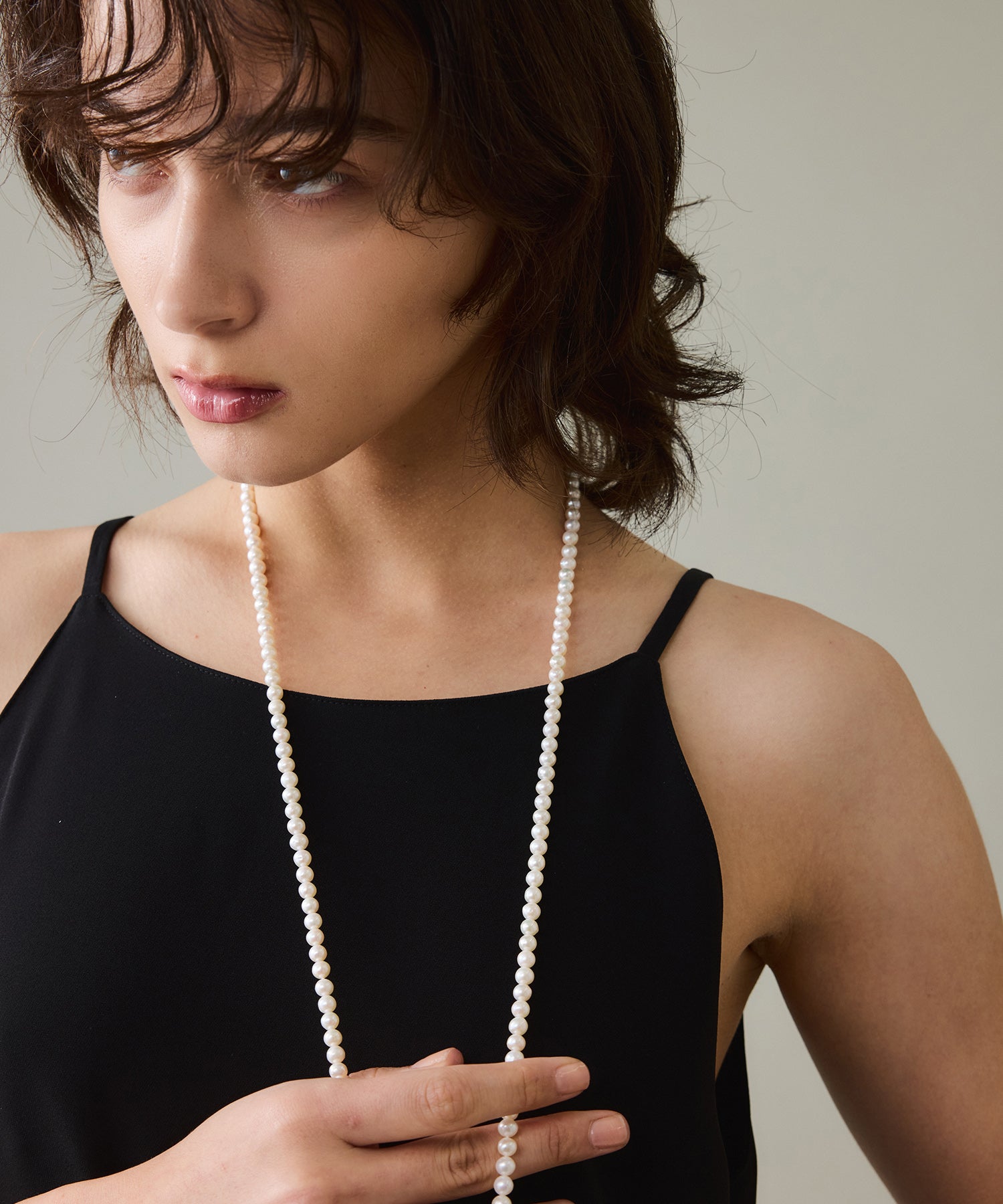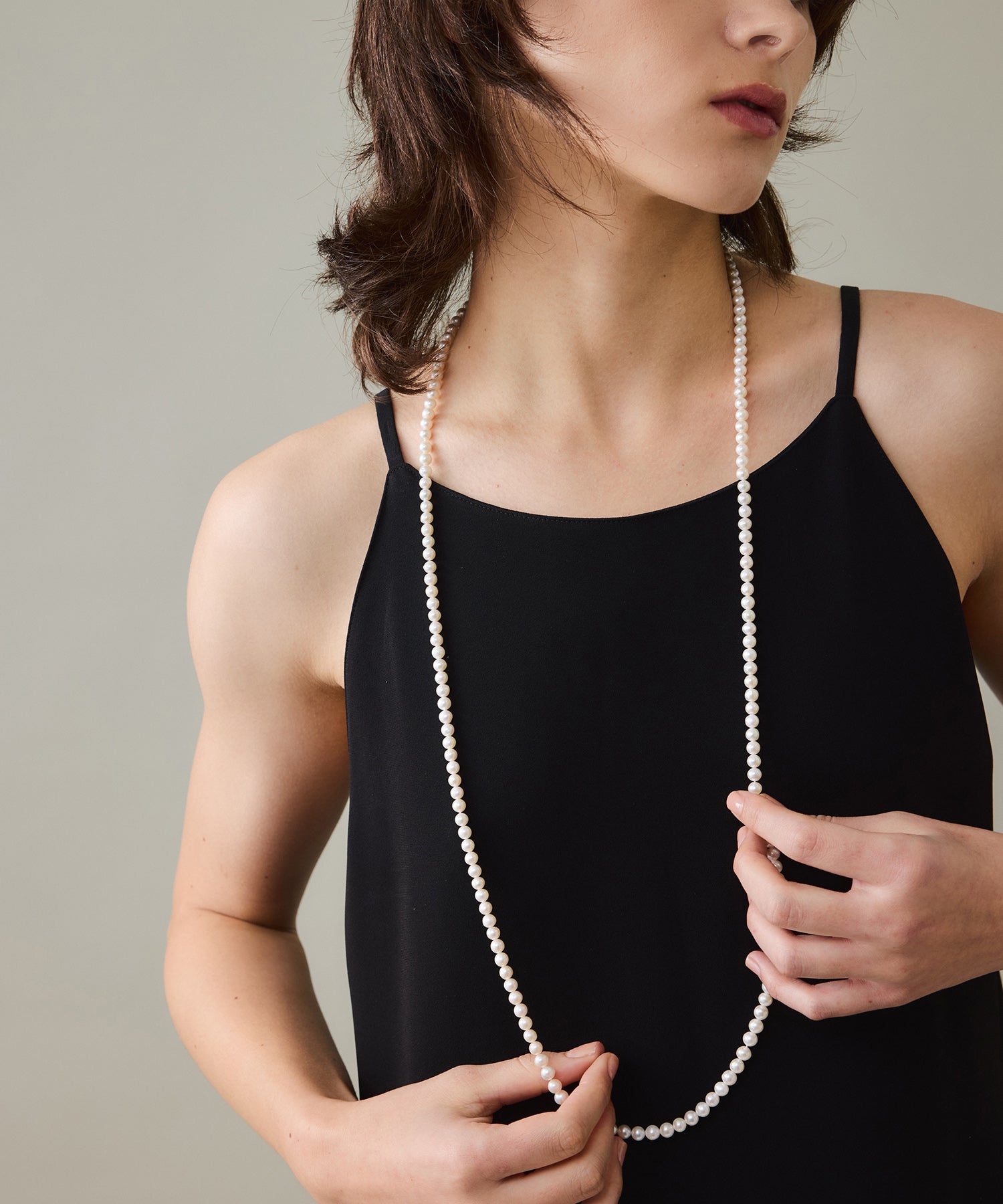 5mmの淡水パールをたっぷりと120cm使用したロングネックレス。