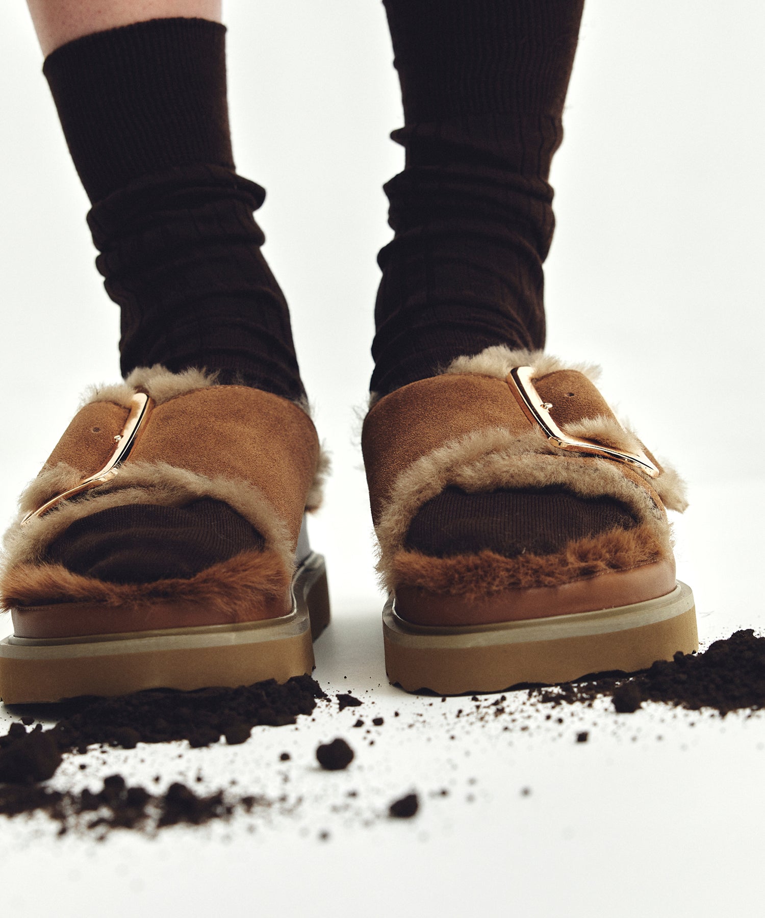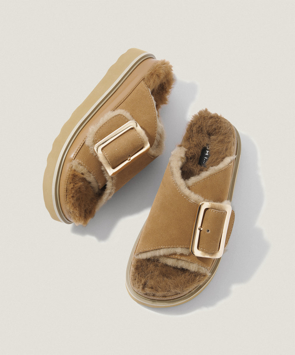 スペイン発〈MOHI〉のファーサンダルは、牛革スエード×ふかふかのファーで、シーズンの狭間にぴったりな一足。