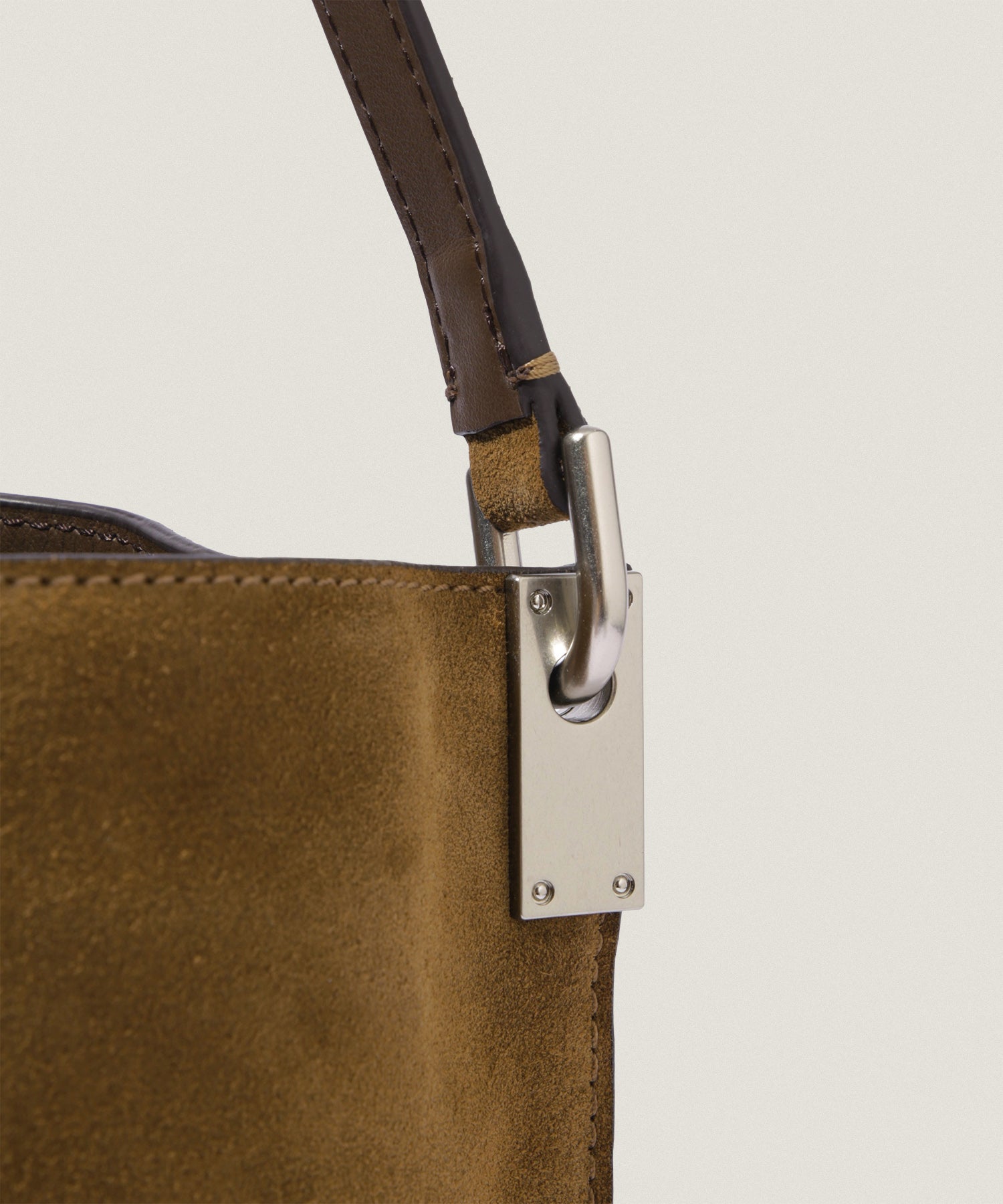 マットシルバーの金具がさりげなく映えるミニマルな佇まいは、“大人のための抜け感”を叶えてくれる一本。深みのあるカーキは、デニムやウールといった秋冬素材とも好相性で、アースカラーを基調としたスタイリングにも自然に溶け込みます。