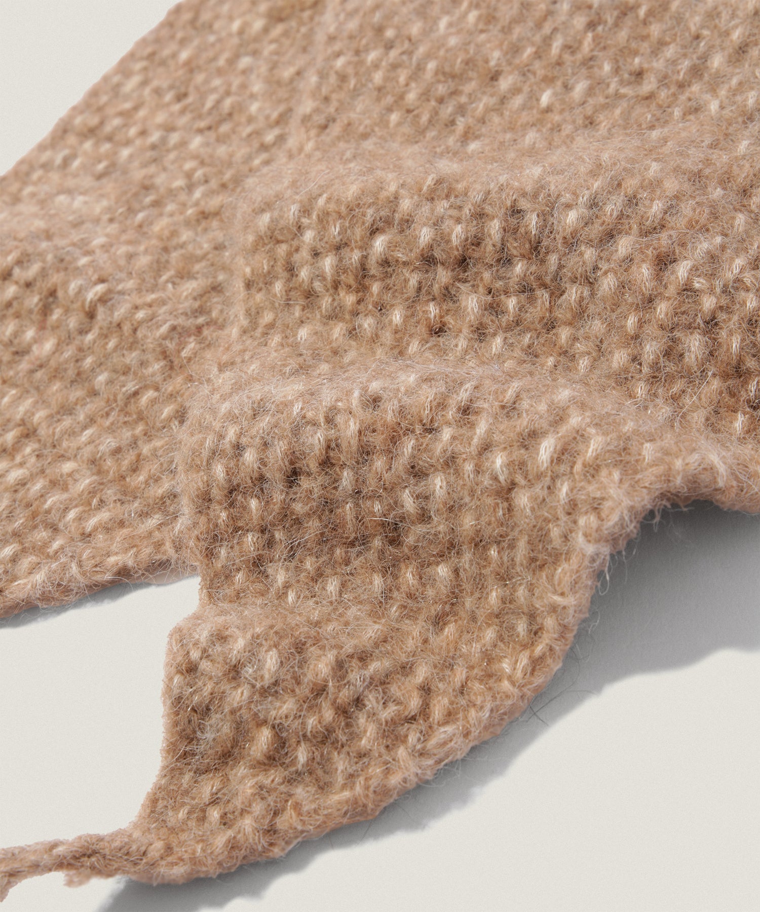 糸の質感だけでなく、編み手の時間やリズムまでもがデザインに込められている気がして、身につけるたびに“誰かの手から自分へ”とつながる感覚が心地いいです。