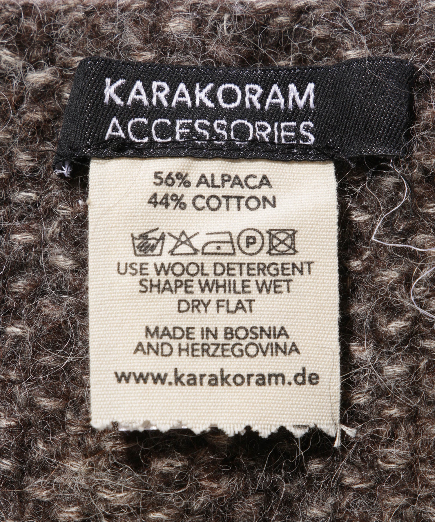 カラコルムは、伝統的な手仕事と天然素材の魅力を活かしたニットアクセサリーを展開するブランド。アルパカやウールなど厳選された素材を、フェアトレードの仕組みを通じて熟練の職人が一点一点丁寧に編み上げています。ハンドメイドならではの温もりと、使うほどに深まる風合いが魅力。シンプルでありながら存在感のあるデザインは、装いに自然なアクセントを添え、日常に長く寄り添うアイテムとして愛されています。