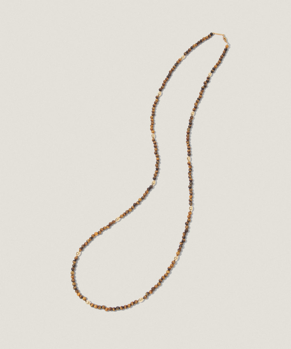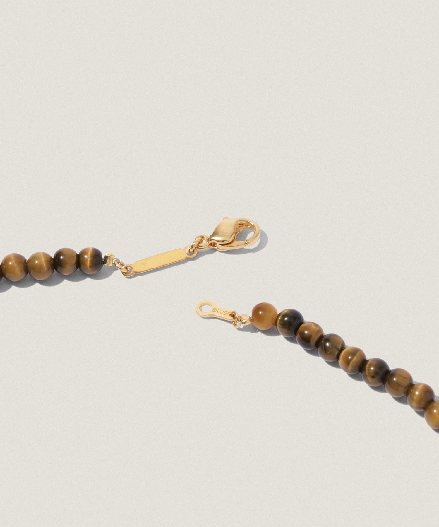 上品な艶を持つ天然石・タイガーアイを使用した、しなやかなビーズネックレス。