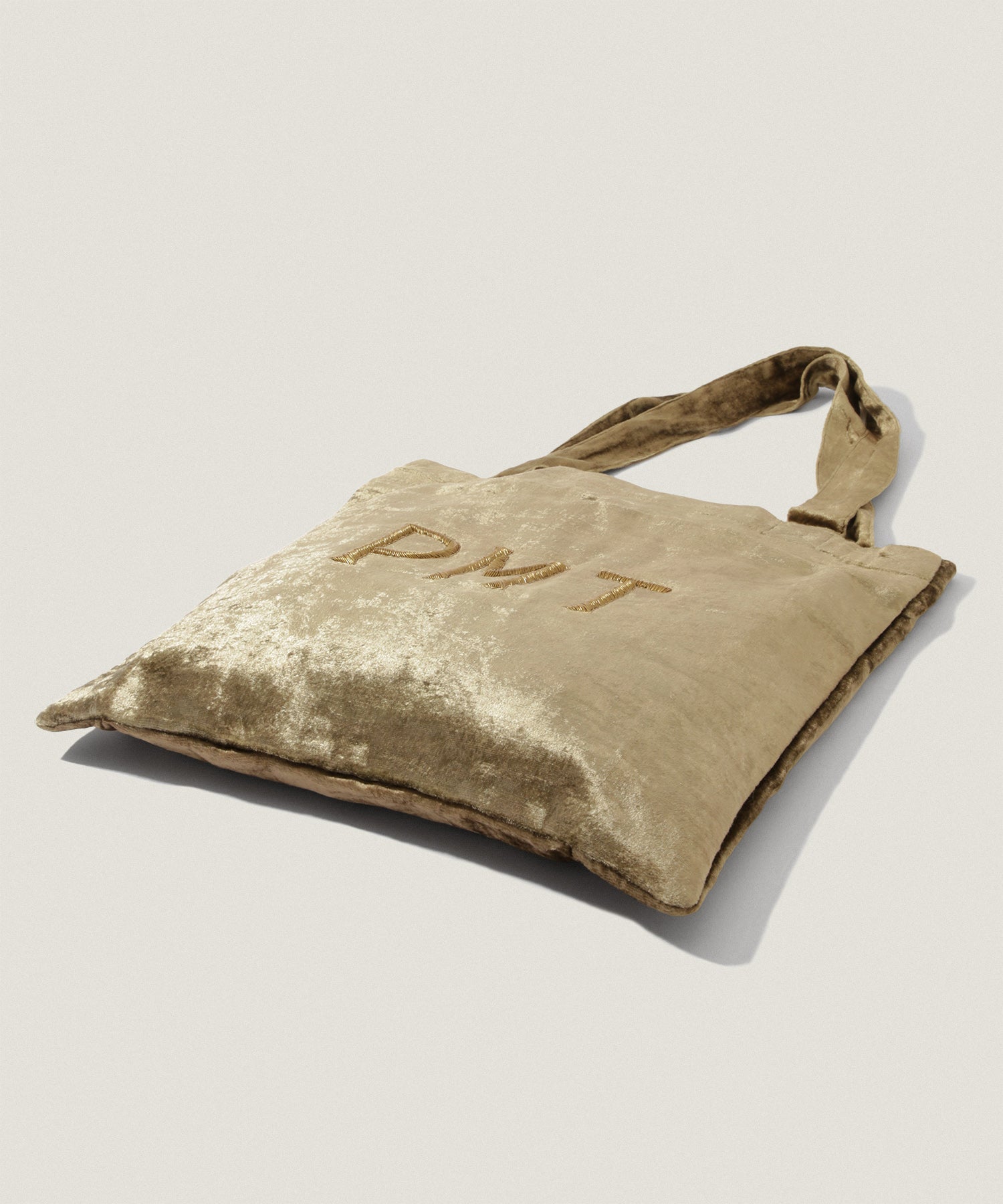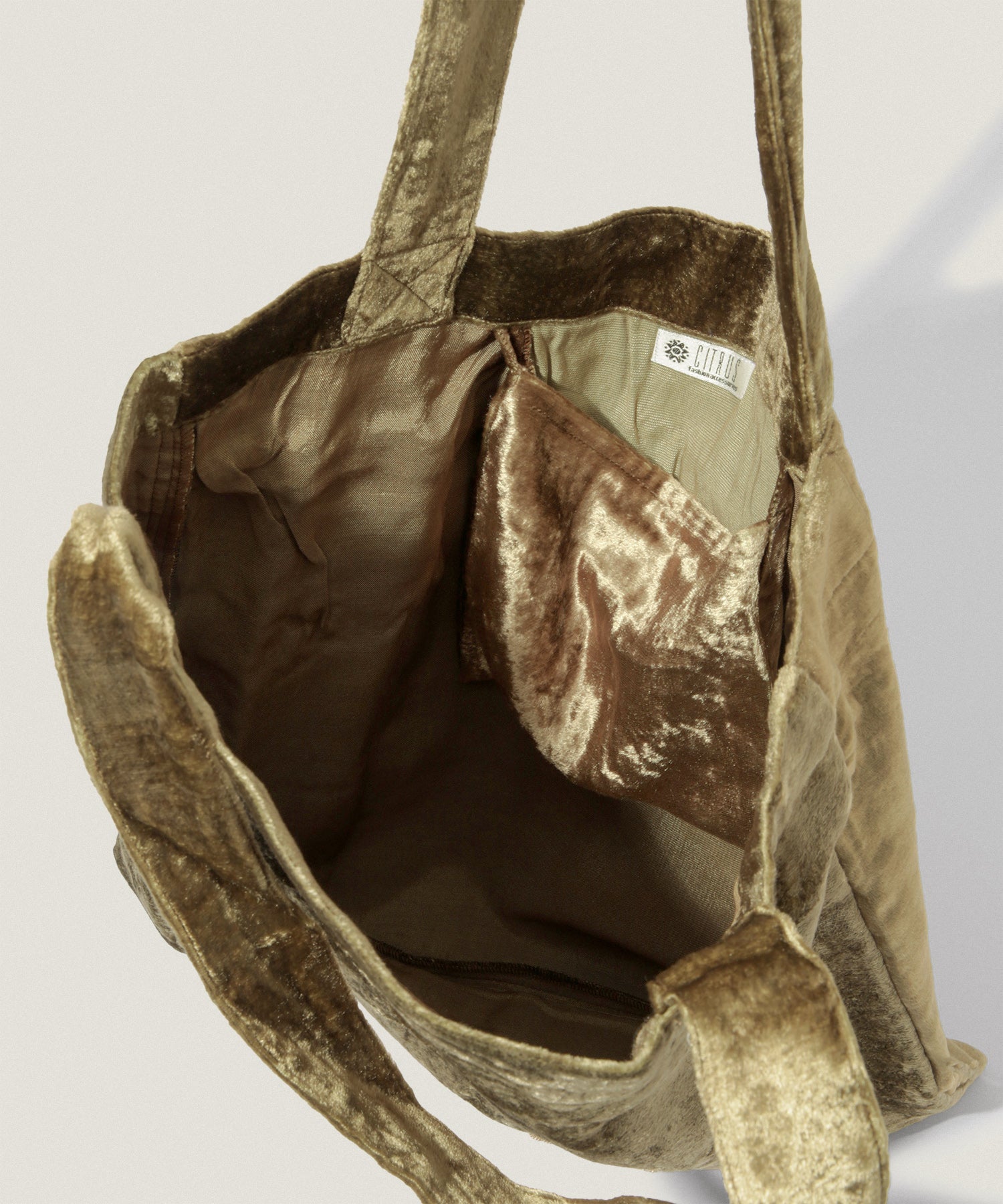 今季は、光沢のあるベルベット素材を採用。カジュアルに傾きがちなトートバッグに、上品な深みと大人の華やぎを添えました。