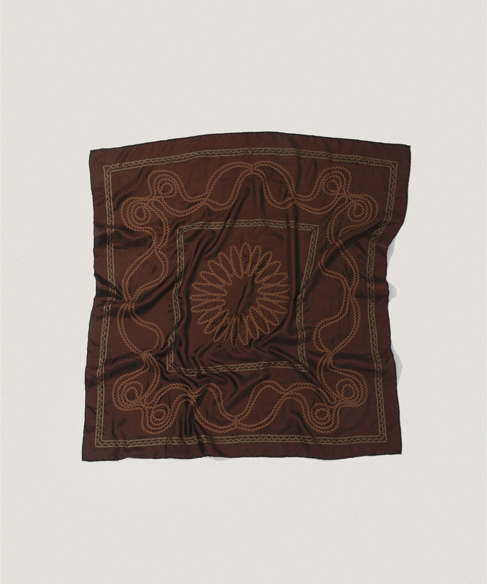 秋らしいペイズリー柄をコード刺繍で仕上げた、シルクスカーフ。