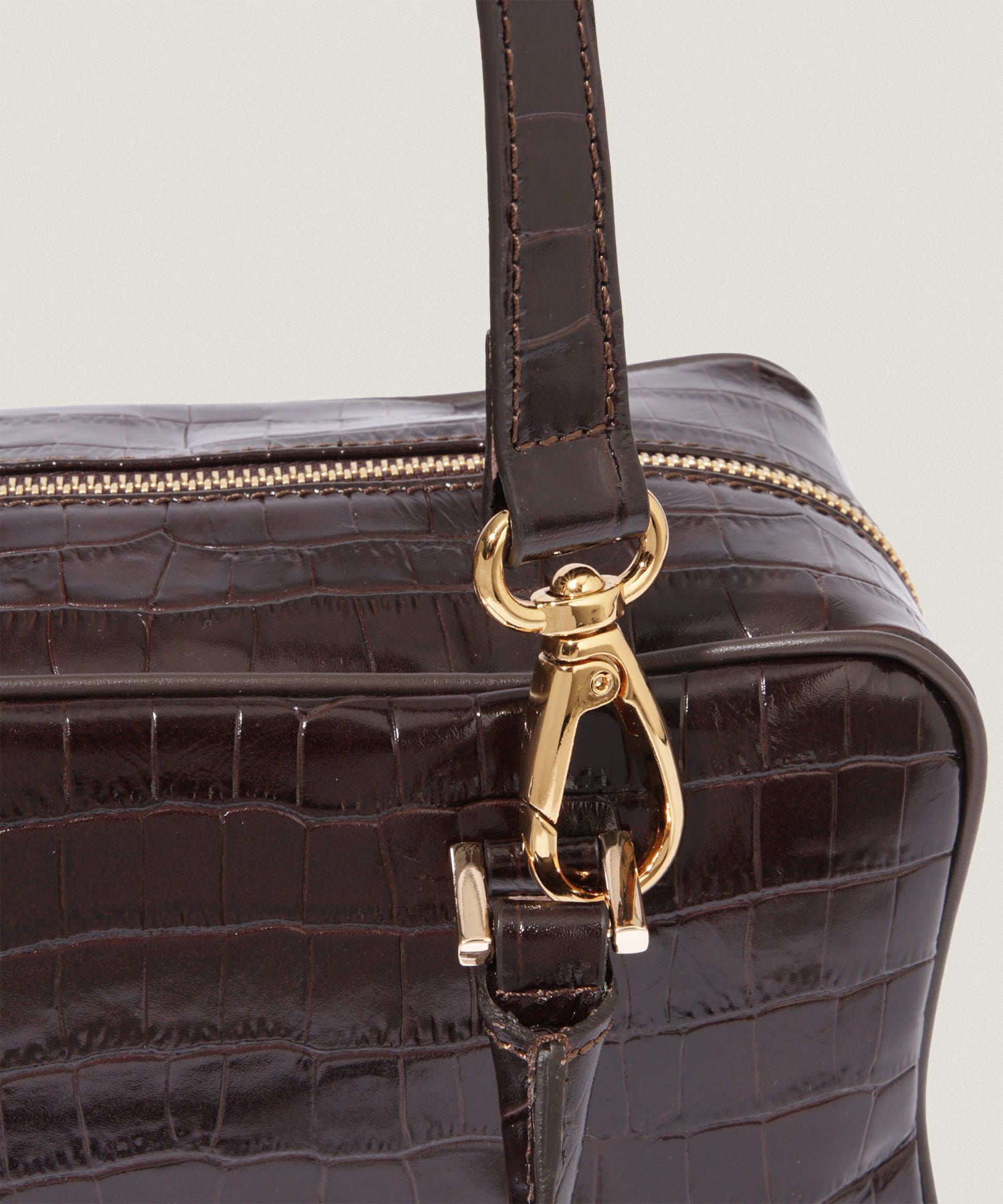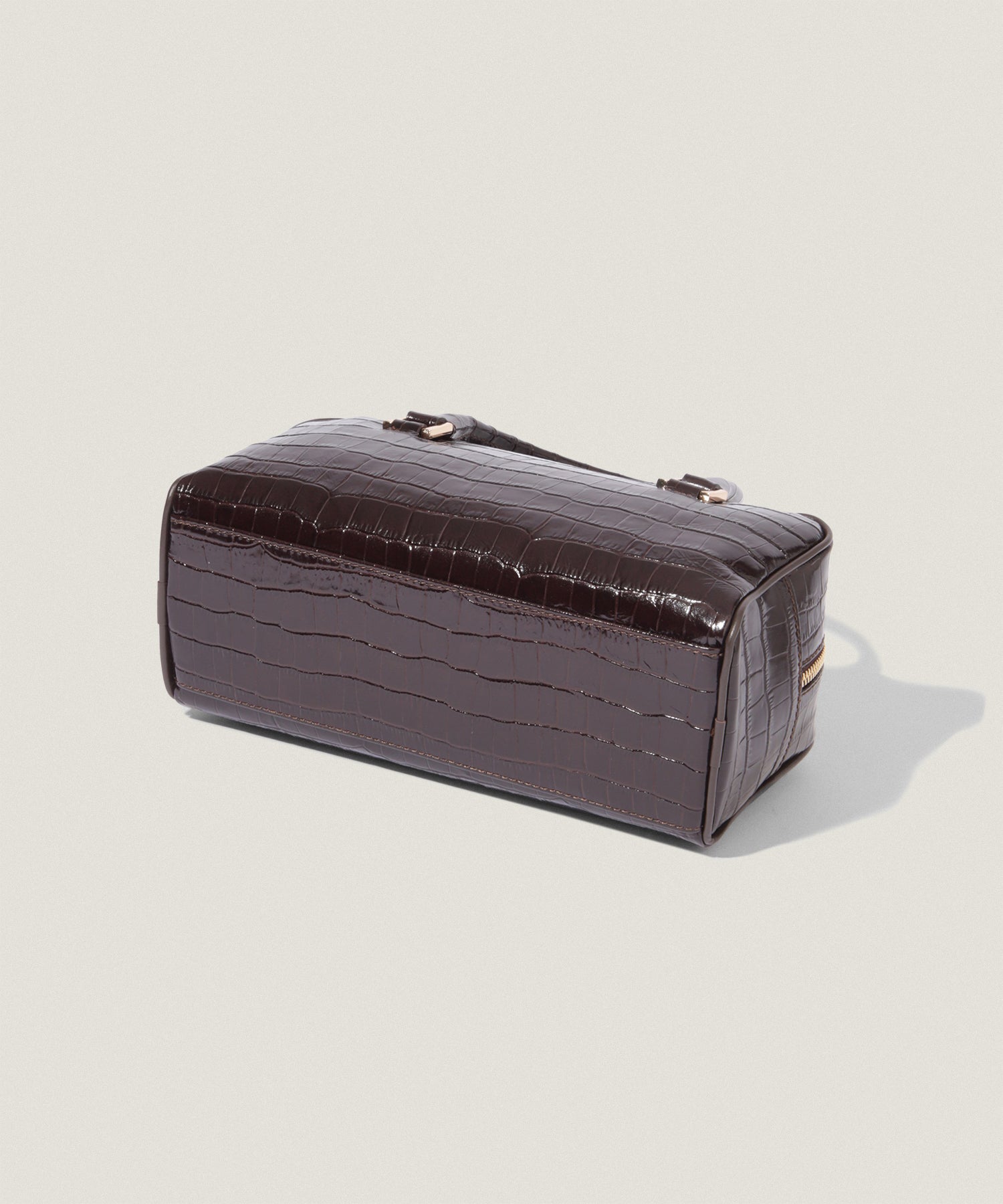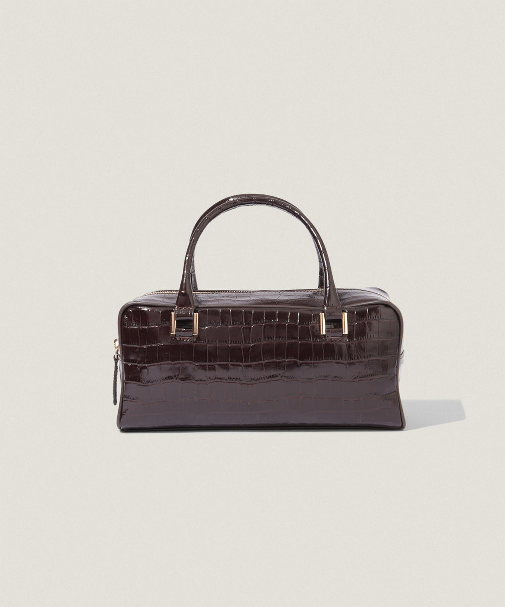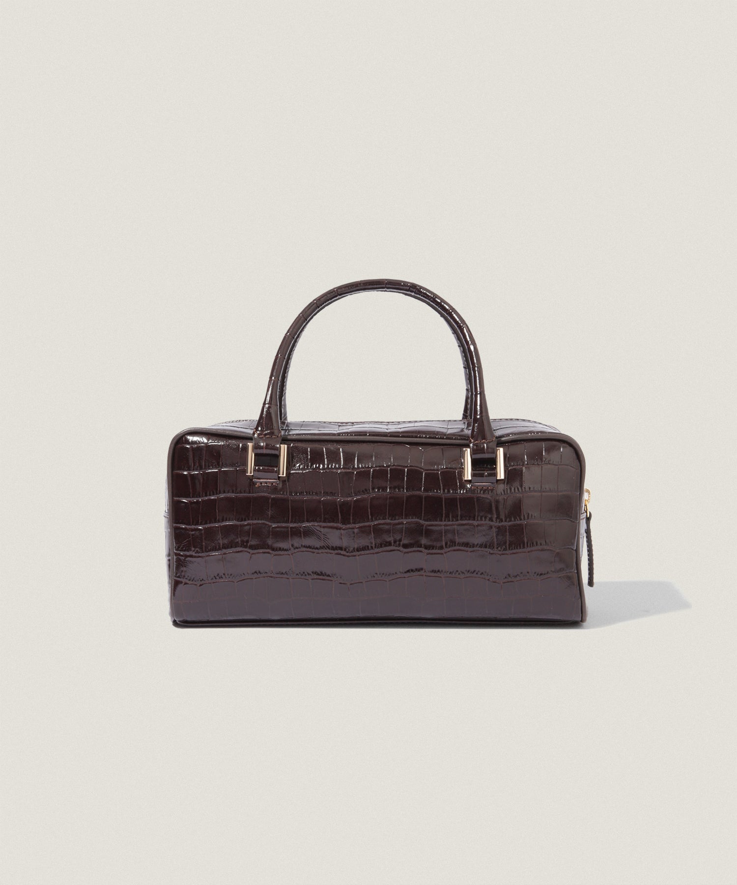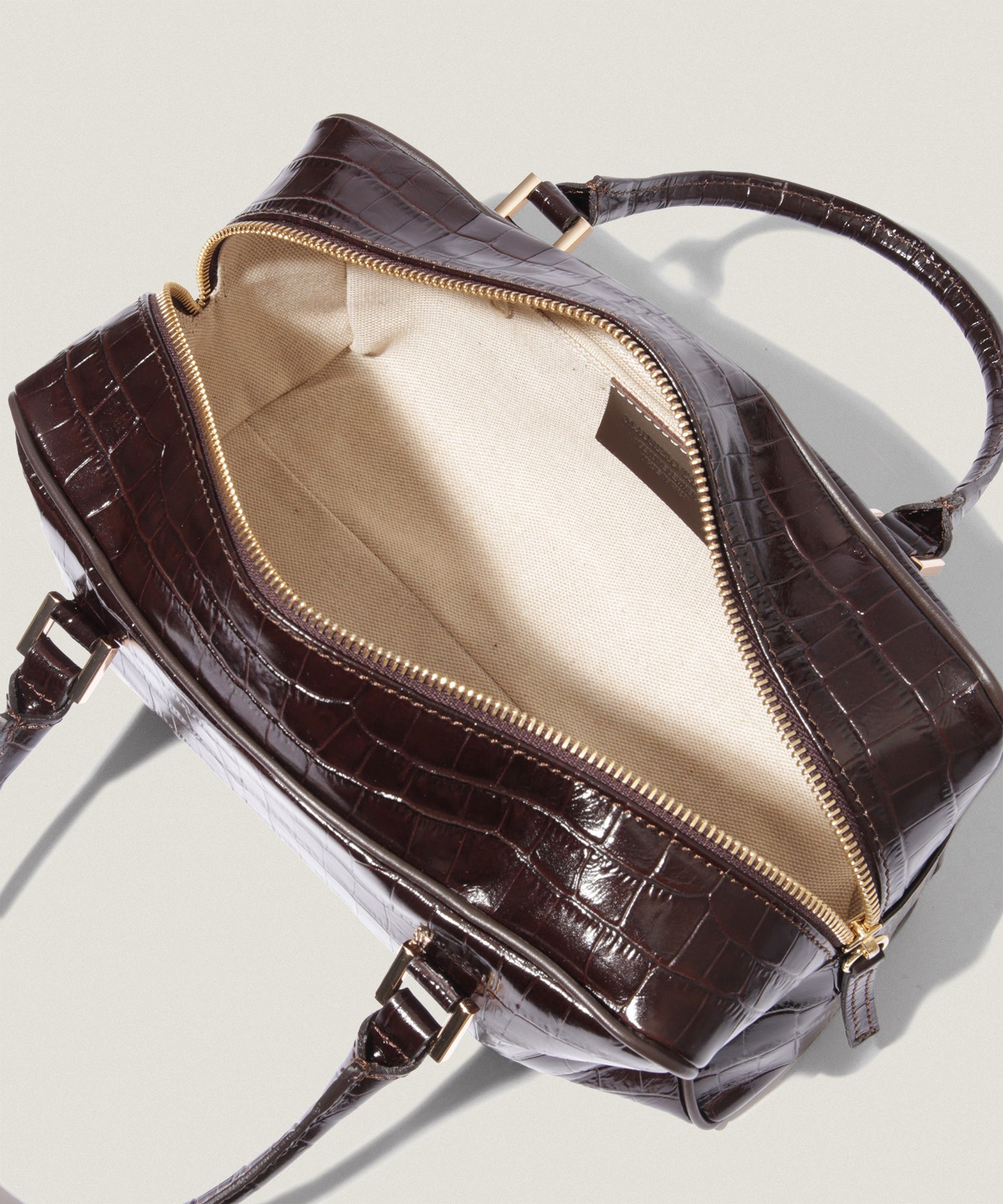 秋のクラシカルな気分にぴったりな、ビターチョコレートのような深みのあるダークブラウンに、クロコの型押し。