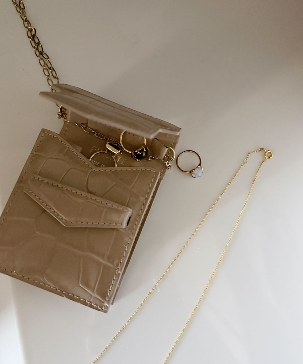 C:リング(13号)/リング(13号)/チェーンネックレス/マイクロバッグ(ベージュ)