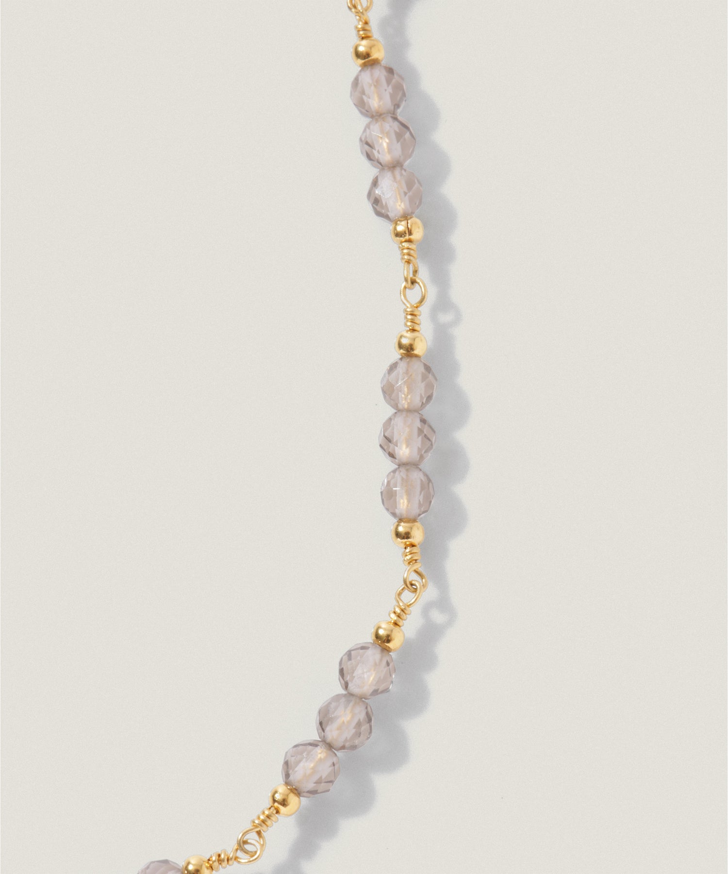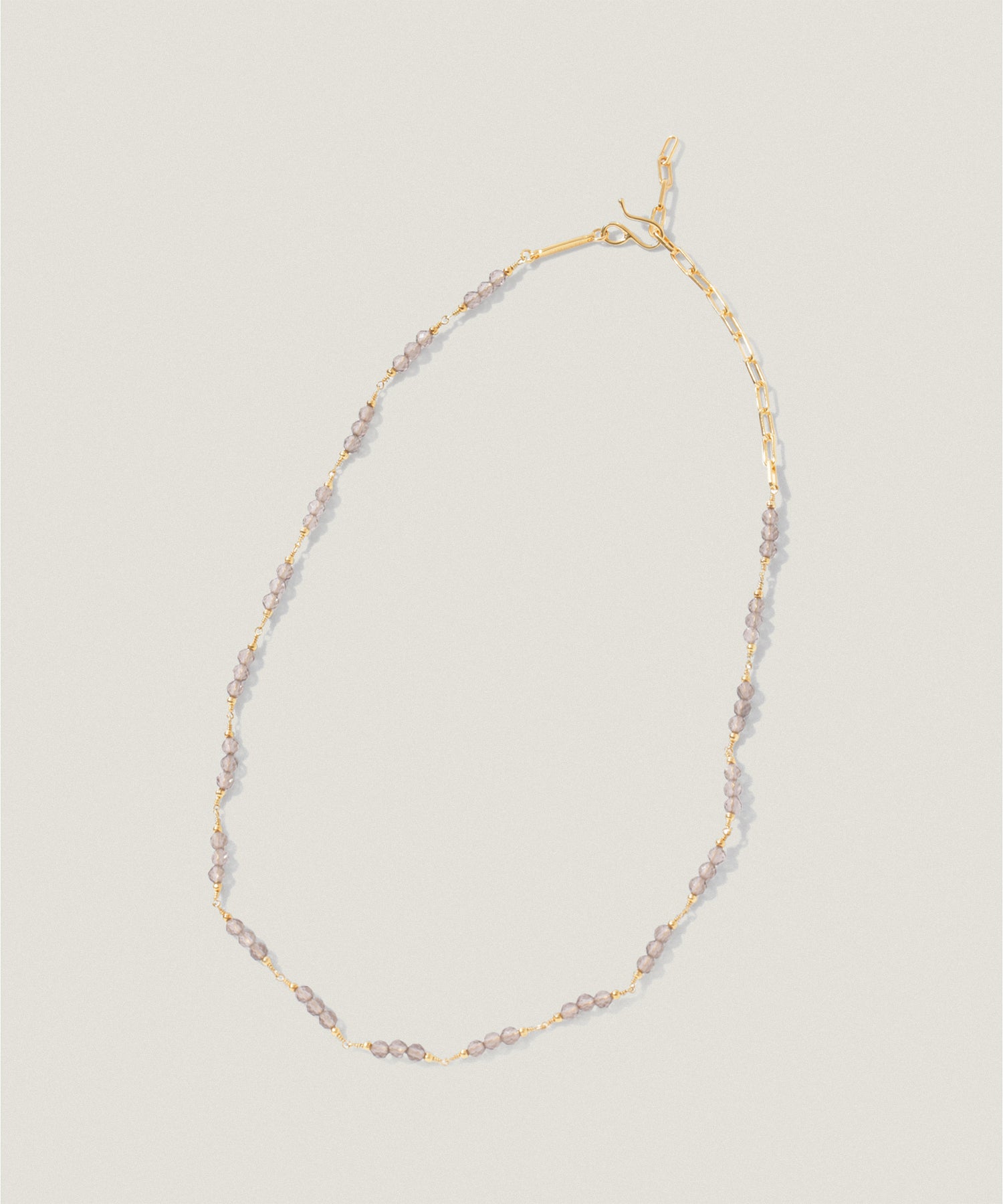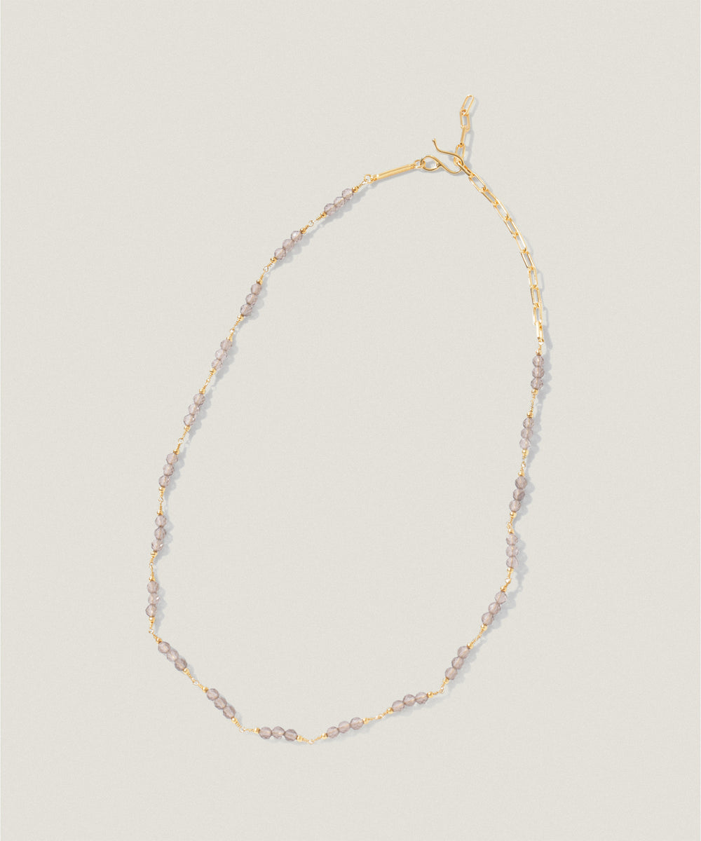 華奢なチェーンに小粒のスモーキークォーツが並んだ、繊細な雰囲気のネックレス。