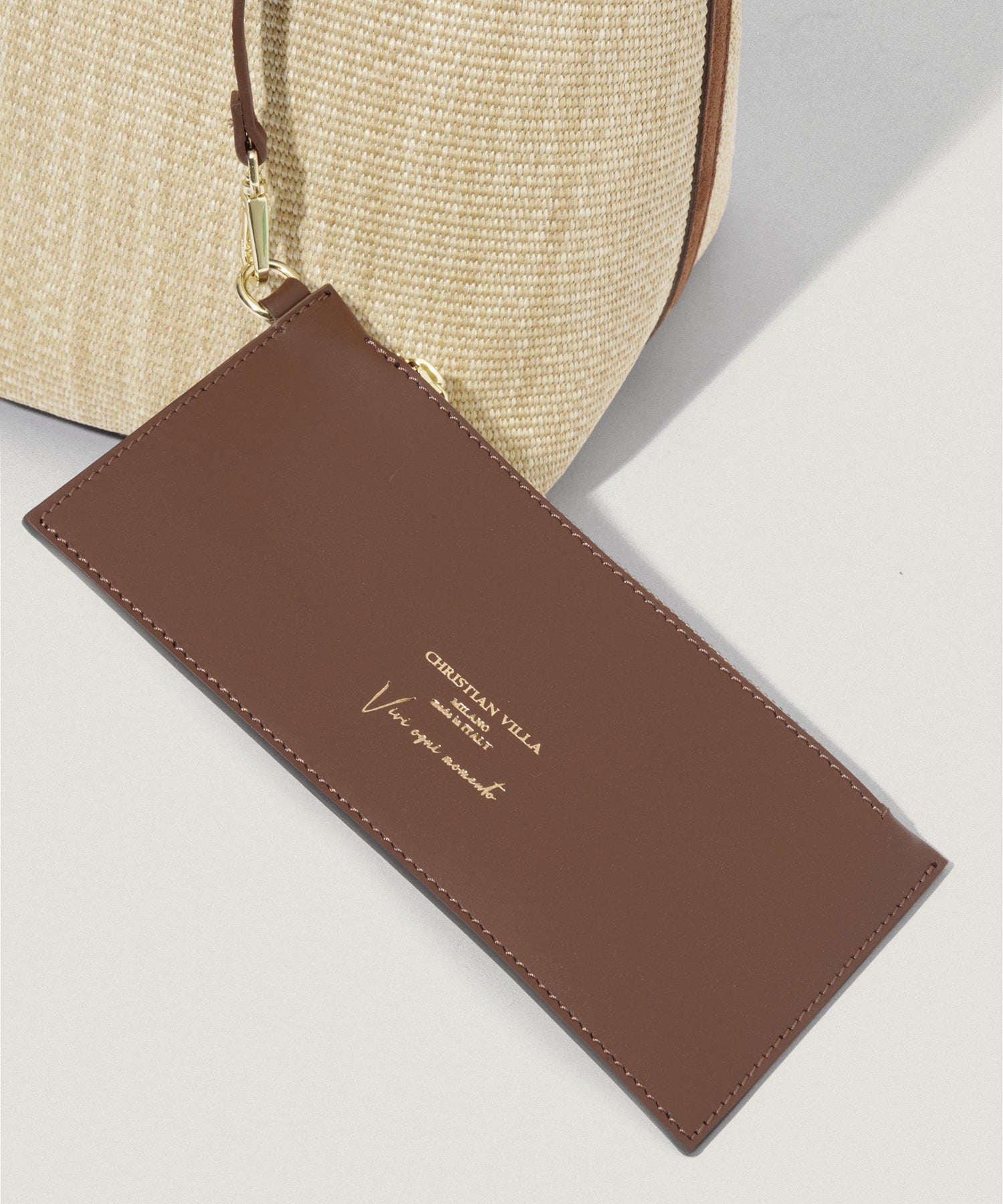 開口部は開いていますが、取り外しができるレザーポーチ付きで、お財布などはそちらに収納可能です。