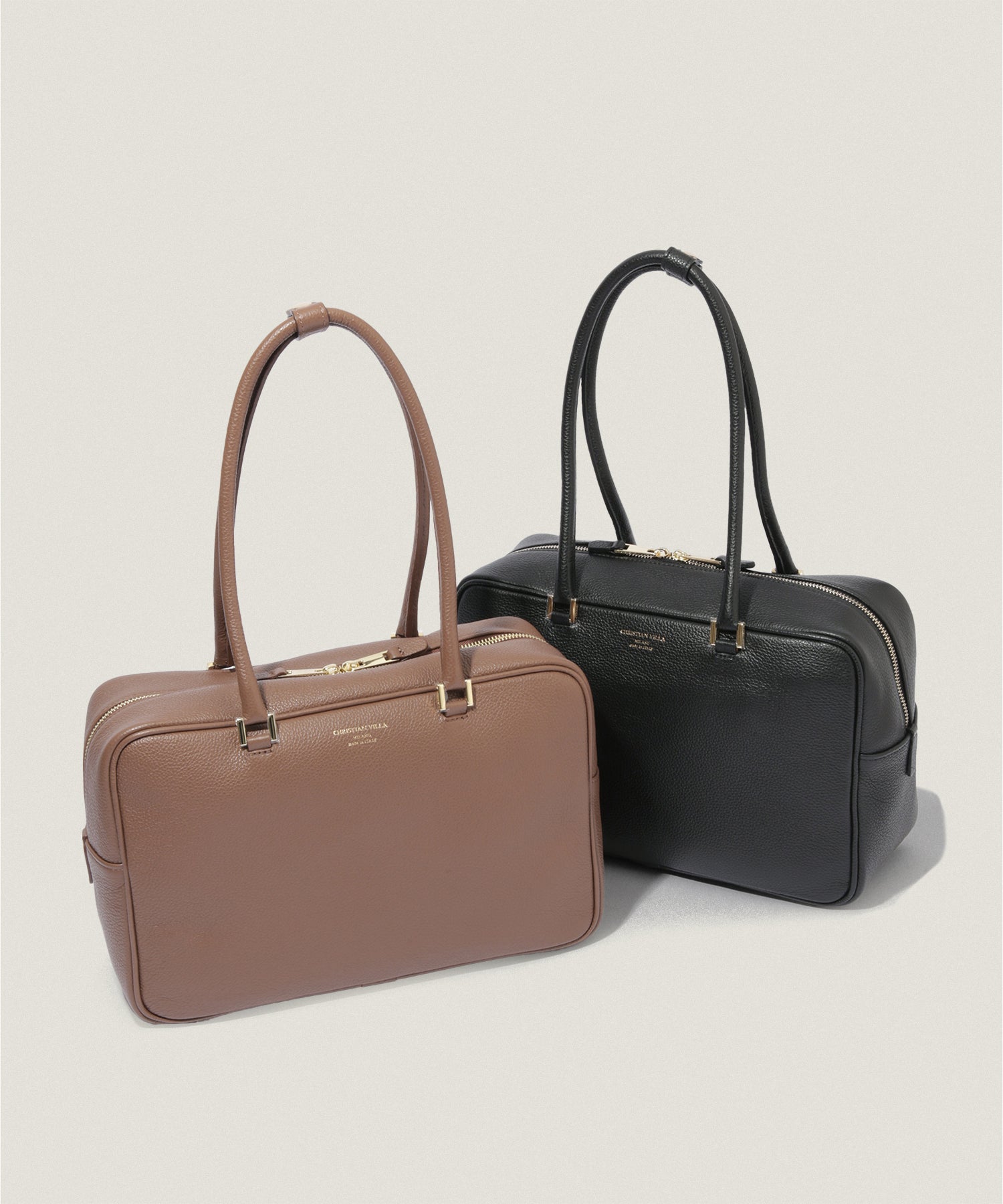 CHRISTIAN VILLAのソフトスクエア型ボストンバッグ。