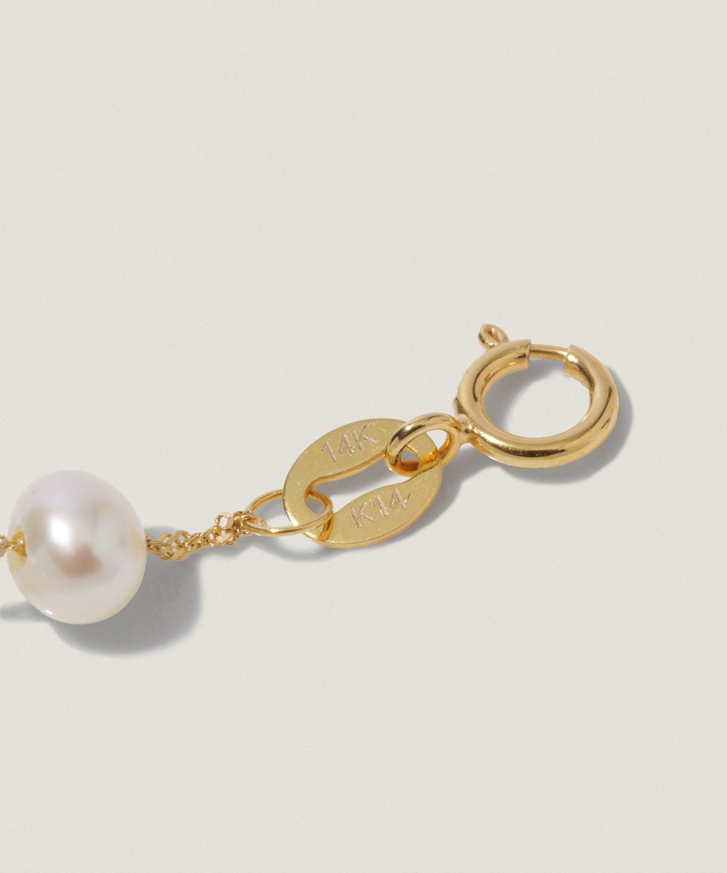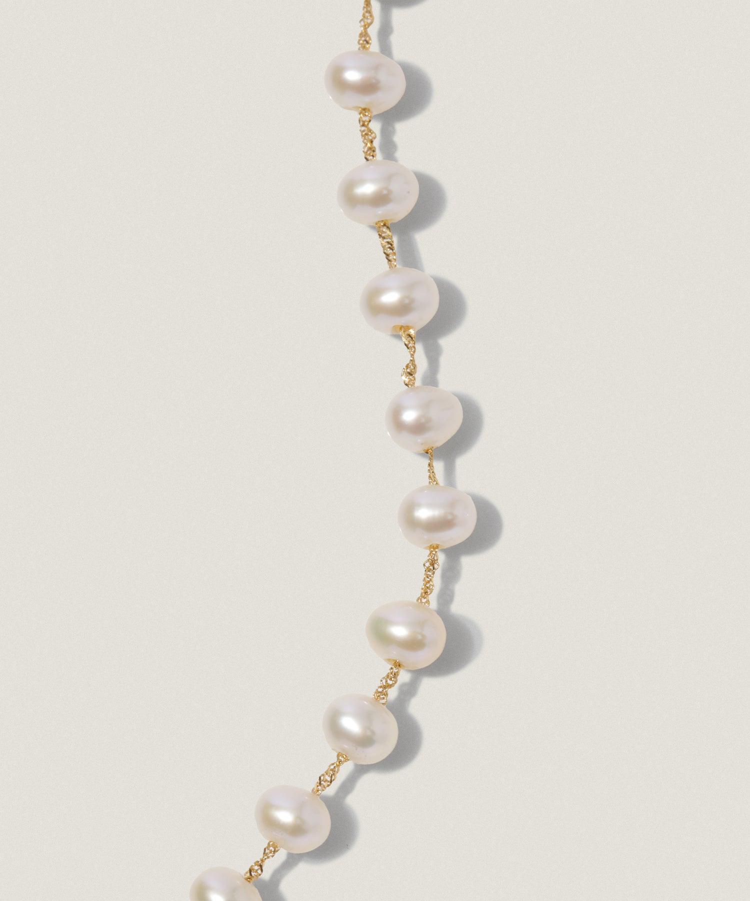 淡水パールとゴールドチェーンを組み合わせた、やわらかな印象のネックレス。