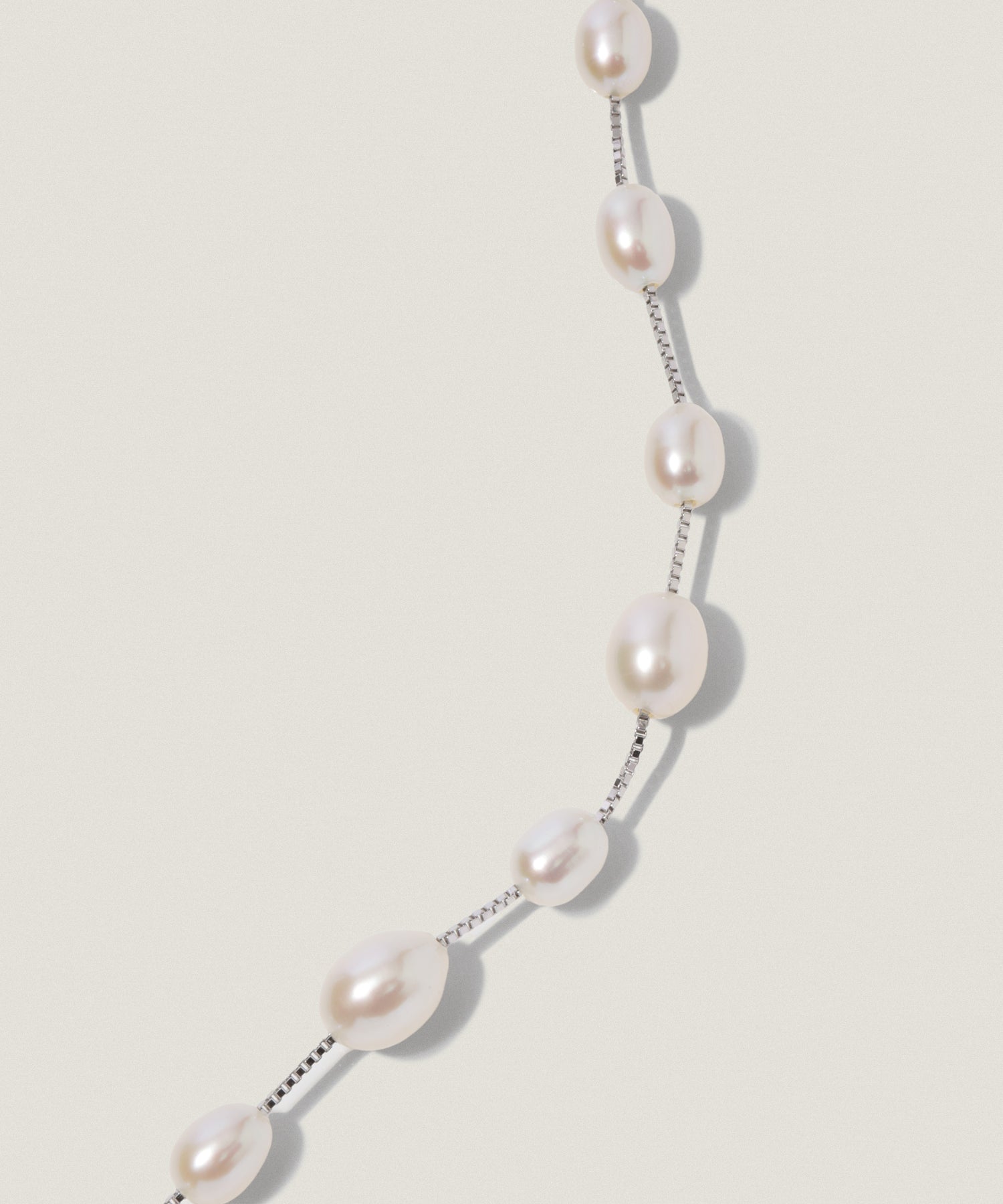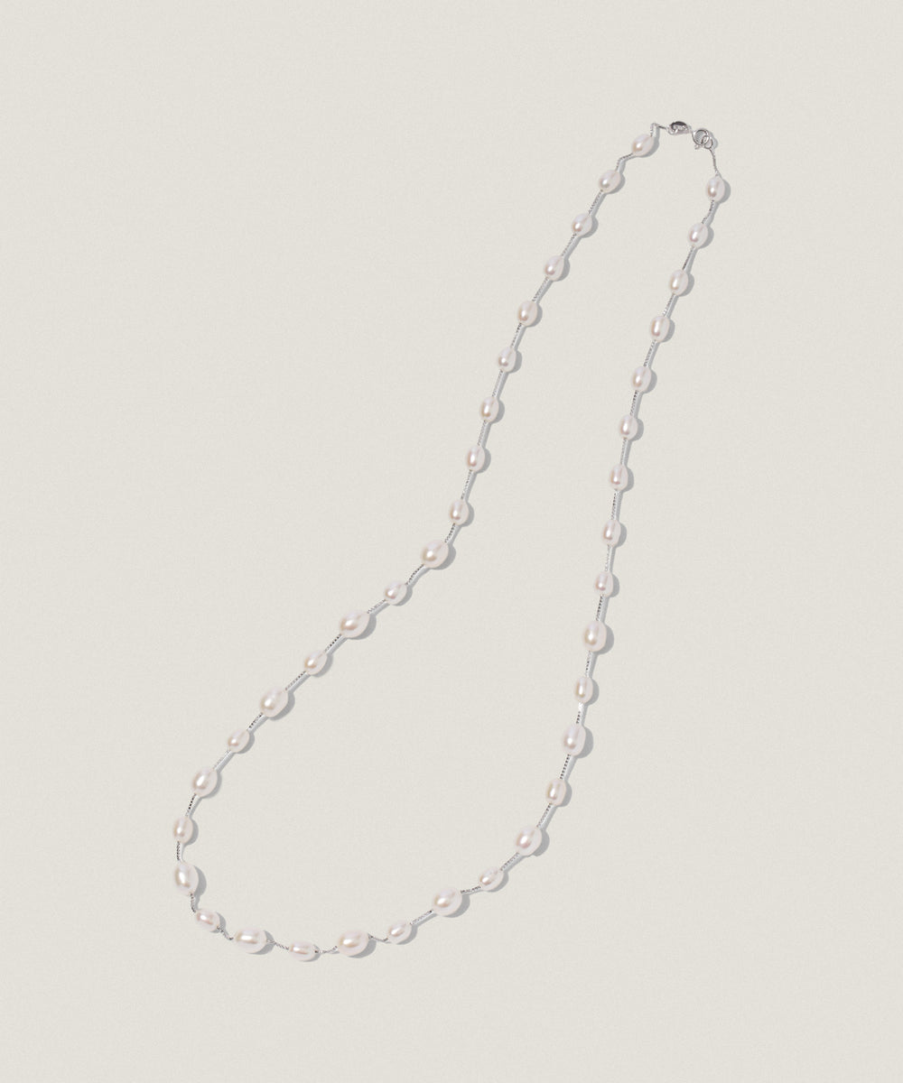 淡水パールをあしらったミドルレングスのパールチェーンネックレス。