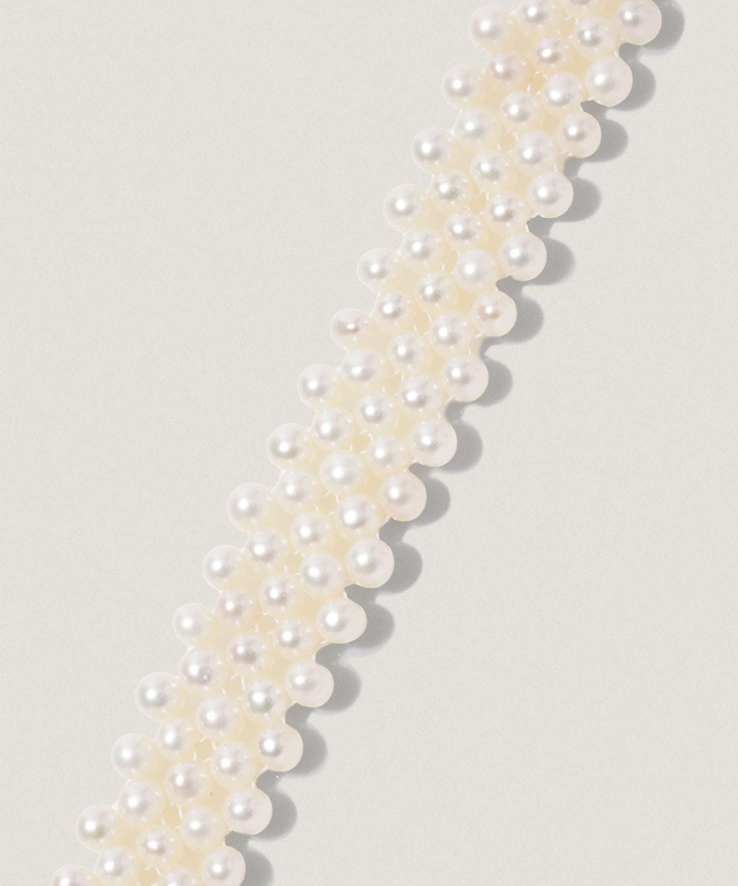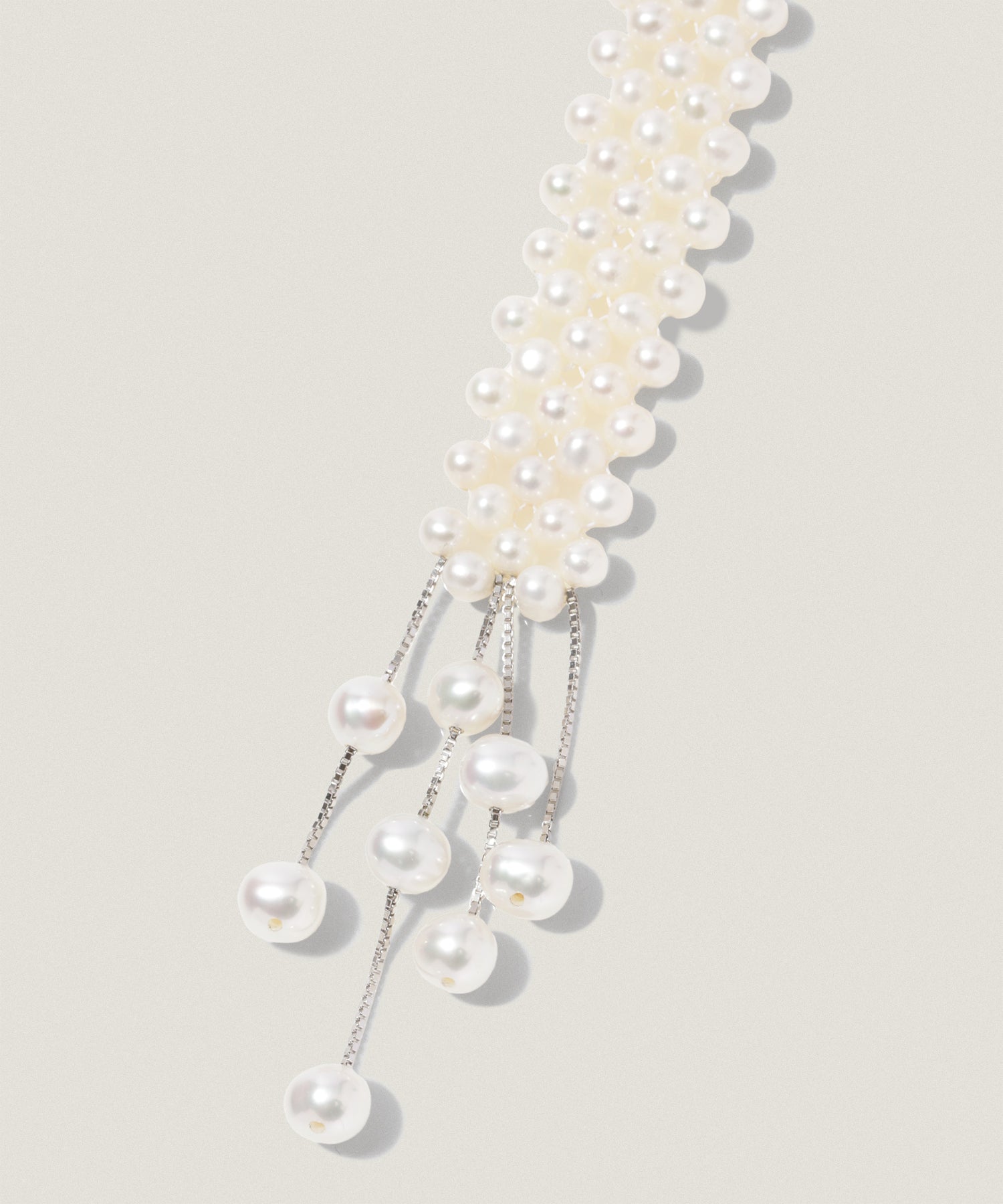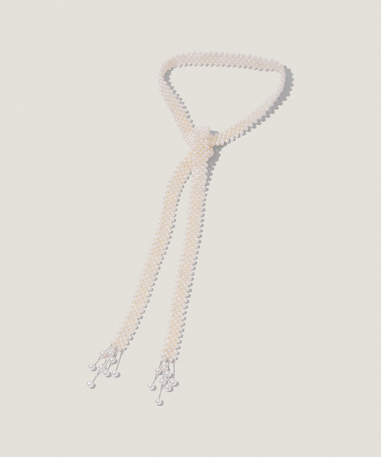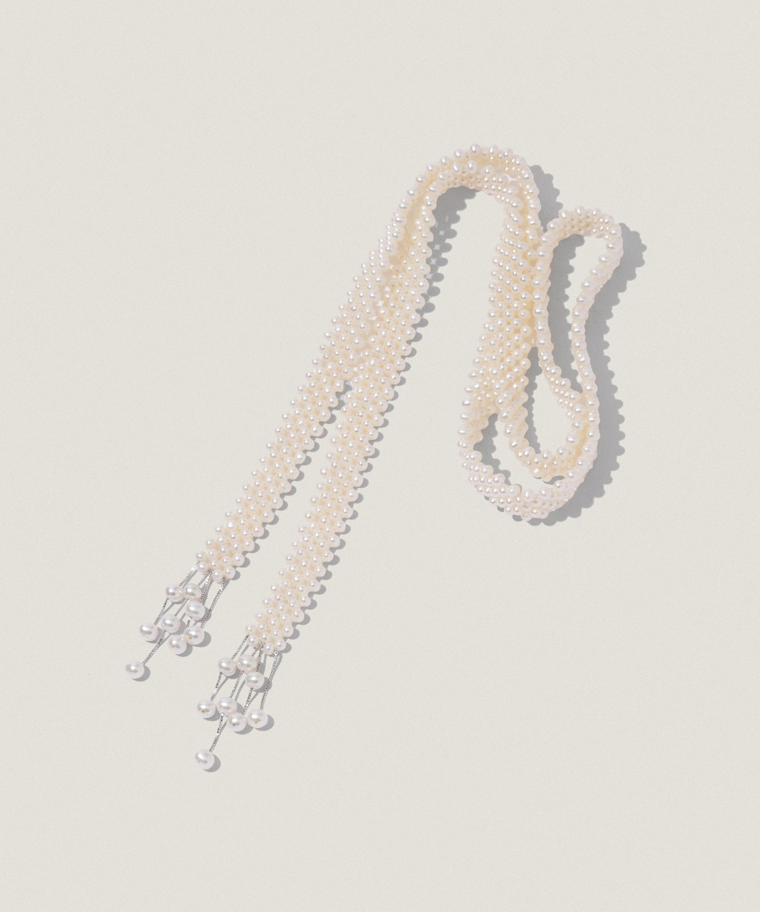 小粒の淡水パールを丁寧に編み込んだラリエットネックレス。