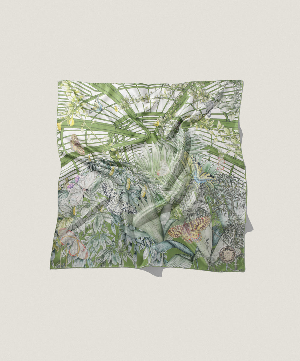 軽く、しなやかで気品あふれるシルク素材を使用したスカーフ。